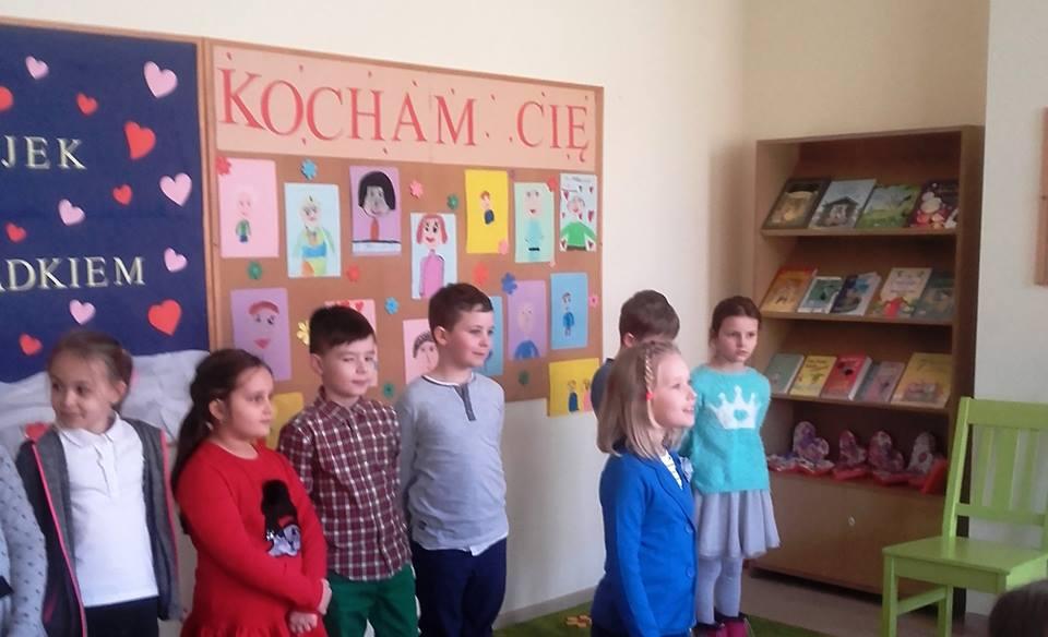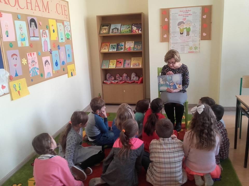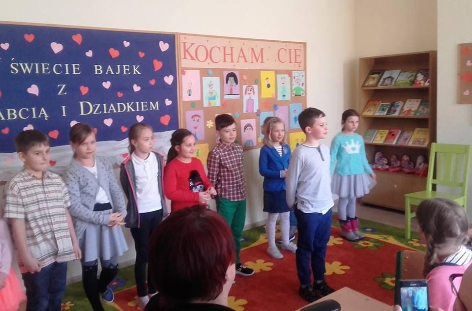 Dnia 22 stycznia z okazji Dnia Babci i Dziadka w bibliotece szkolnej odbyło się spotkanie "W świecie bajek z Babcia i Dziadkiem". Dzieci ze świetlicy pięknie wyrecytowały wiersze dla swoich kochanych Babć i Dziadków. Wysłuchano muzycznej laurki. Po występach dzieci zgodnie z tematyką spotkania przez babcię została przeczytana bajka "Czerwony Kapturek" . Wnuki wręczyły upominki i złożyły najlepsze życzenia, po czym nastąpił wspólny poczęstunek. Z księgozbioru biblioteki zostały wyeksponowane książki opowiadające o babciach i dziadkach. Dziękujemy przybyłym gościom za miłe spotkanie, a dzieci zapraszamy do biblioteki.