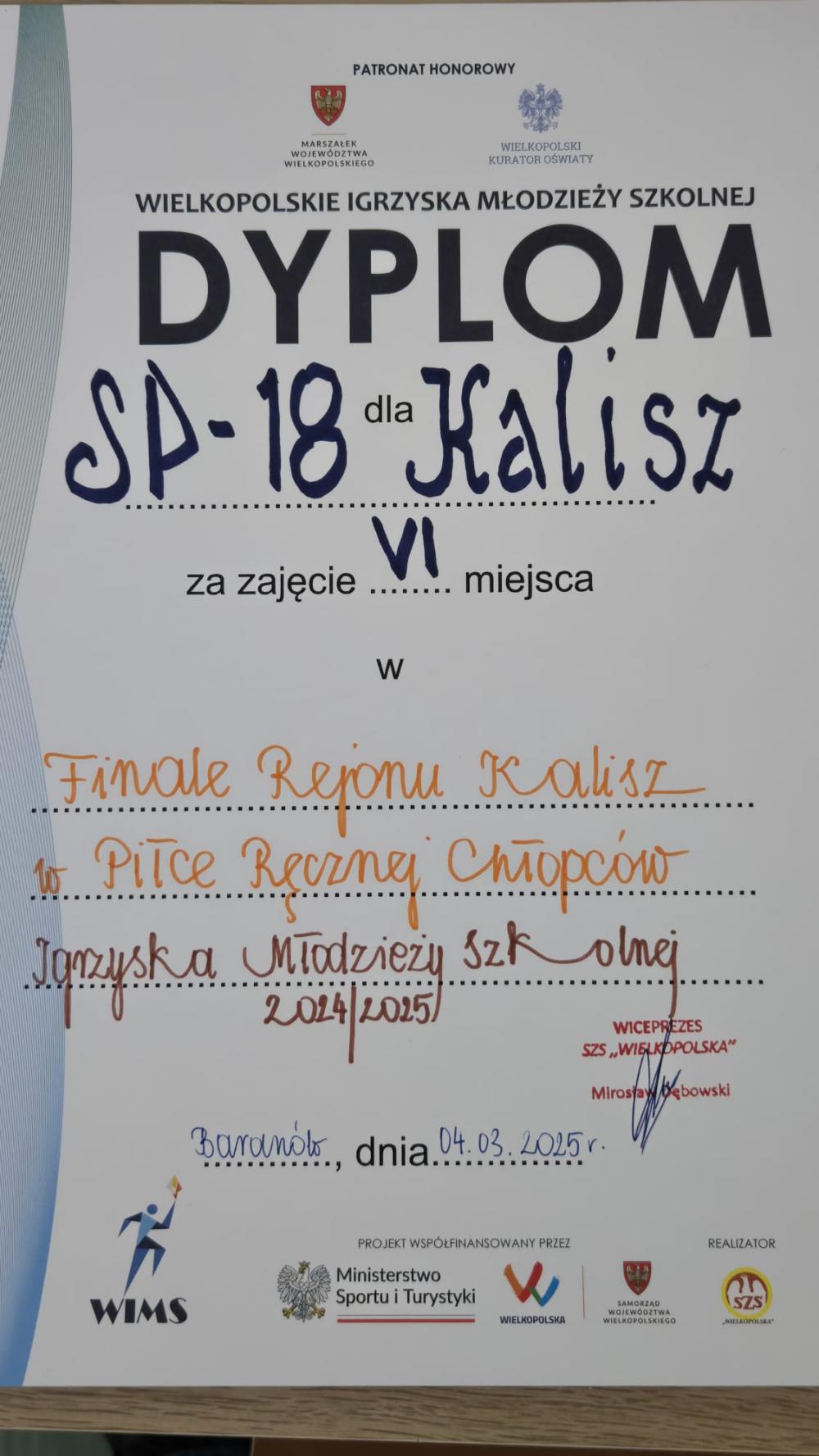 W dniu dzisiejszym w Zespole Szkół w Baranowie odbył się Finał Rejonu Piłki Ręcznej Chłopców w ramach Igrzysk Młodzieży Szkolnej.