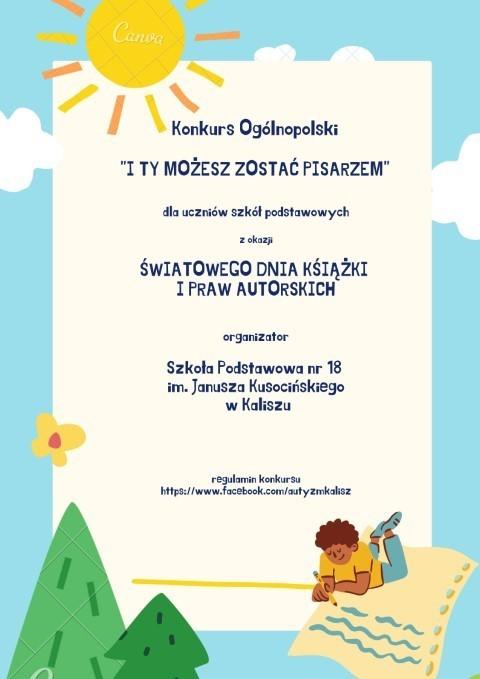 Zapraszamy do udziału w konkursie plastycznym "I Ty możesz zostać pisarzem zorganizowanym z okazji Światowego Dnia Książki i praw Autorskich.