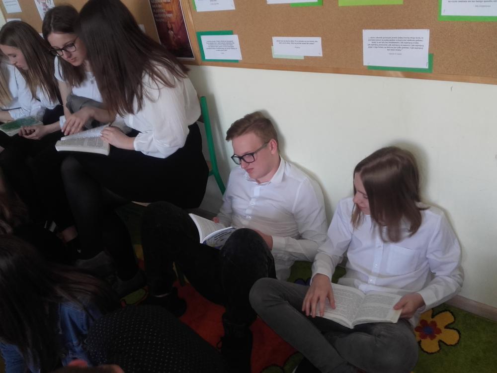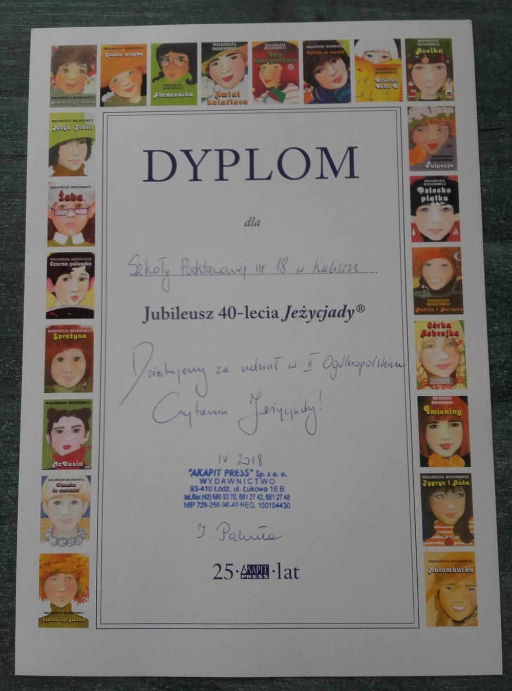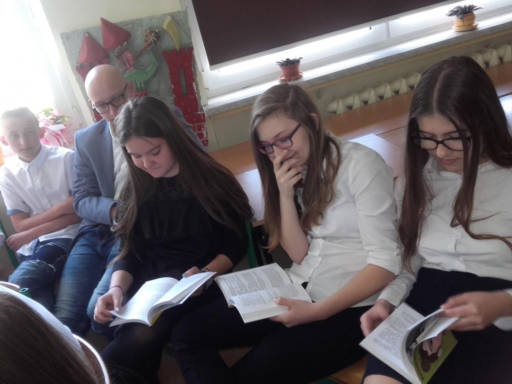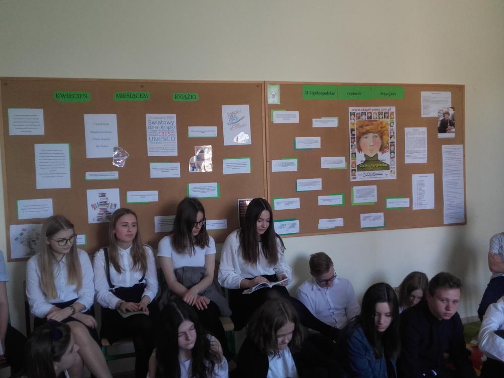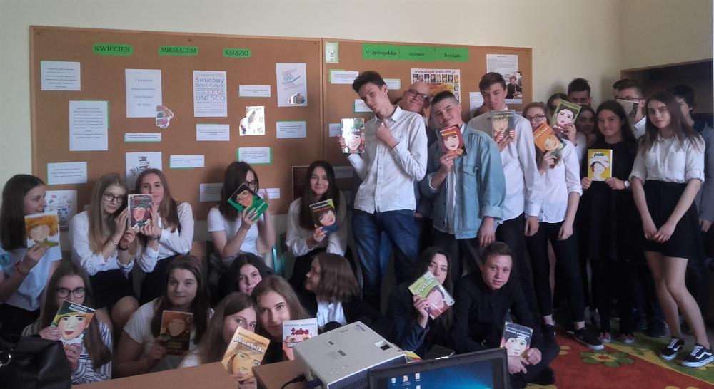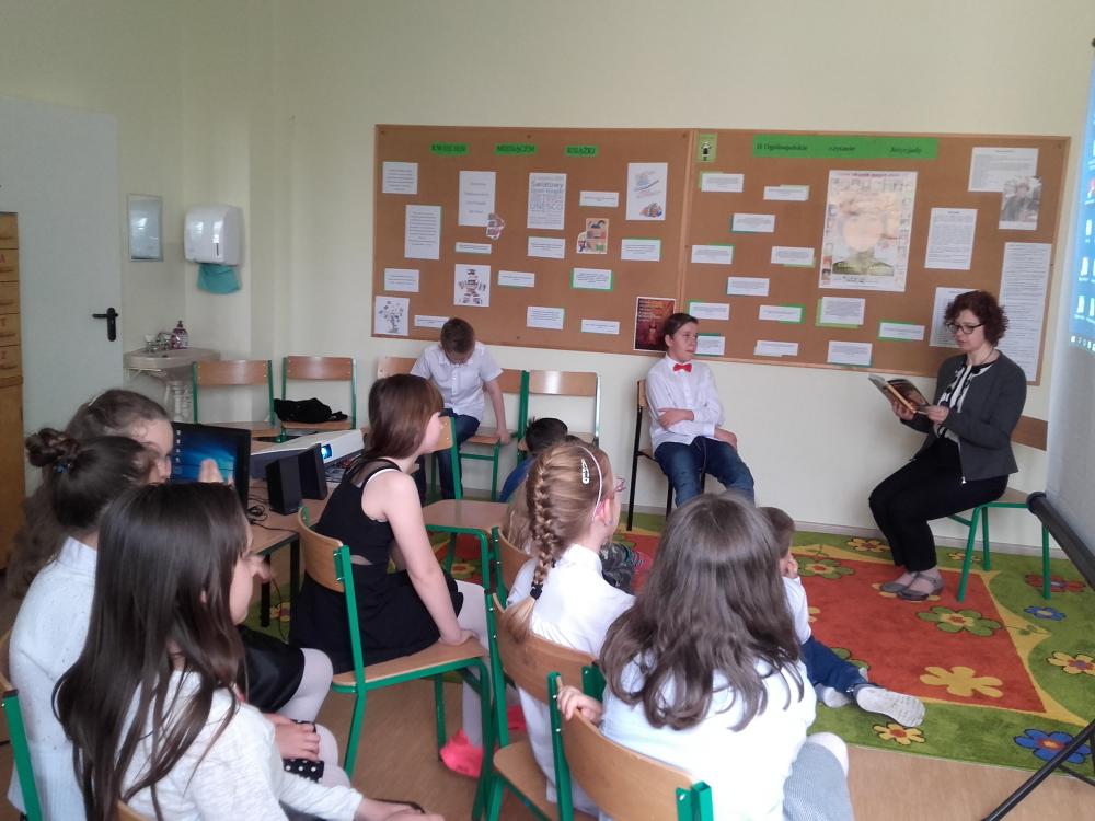W akcji wzięli udział uczniowie klasy 4b, 5b, 6c, 7c oraz II d gimnazjum. Uczestnicy akcji obejrzeli wywiad z Małgorzatą Musierowicz, dzięki któremu bliżej poznali autorkę. Młodsi uczniowie dowiedzieli się, co to jest Jeżycjada. Uczestnicy poznali fragmenty wybranych tomów m.in. "Opium w rosole", "Ida sierpniowa", "Kwiat kalafiora". Uczniowie klasy II gimnazjum otrzymali losowo wybrane książki, ich zadanie polegało na wyszukaniu interesującego ich fragmentu i przeczytaniu go koleżankom i kolegom. Uczniowie zapoznali się z najnowszym 22 tomem, czyli utworem pt."Ciotka Zgryzotka". W bibliotece opracowana została gazetka przestawiająca krótko sylwetkę Małgorzaty Musierowicz oraz zdobyte przez nią nagrody. Umieszczone zostały tam także cytaty z różnych tomów Jeżycjady. Przygotowano też wystawę całego cyklu, który znajduje się w naszych zbiorach. Spotkanie zaowocowało kilkoma wypożyczeniami książek z cyklu o rodzinie Borejków.