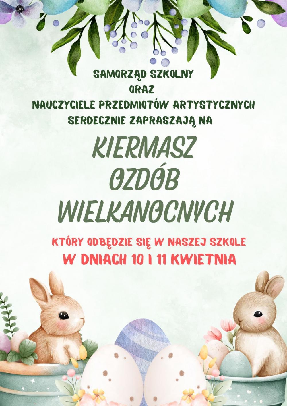 Samorząd Szkolny oraz nauczyciele przedmiotów artystycznych zapraszają na kiermasz ozdób wielkanocnych.