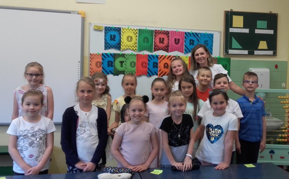 O tytuł "Małego Mistrza Ortografii" konkurowało ze sobą 14 trzecioklasistów. Uczniowie zmagali się z dyktandem oraz karta pracy pełną trudności ortograficznych. Organizatorem konkursu była pani Monika Pawlak. W składzie komisji konkursowej była pani Wicedyrektor Mariola Zalewicz oraz panie Katarzyna Szmidt i Agnieszka Nowicka.Ogłoszenie wyników odbędzie się 30 maja podczas festynu z okazji Dnia Dziecka.