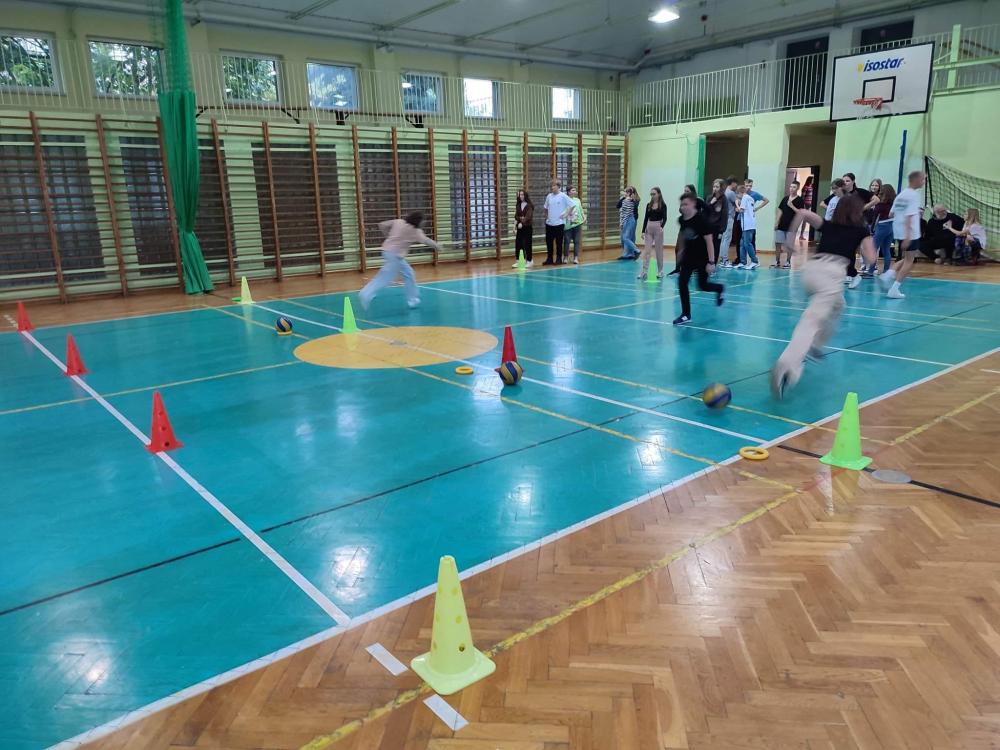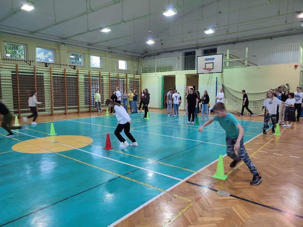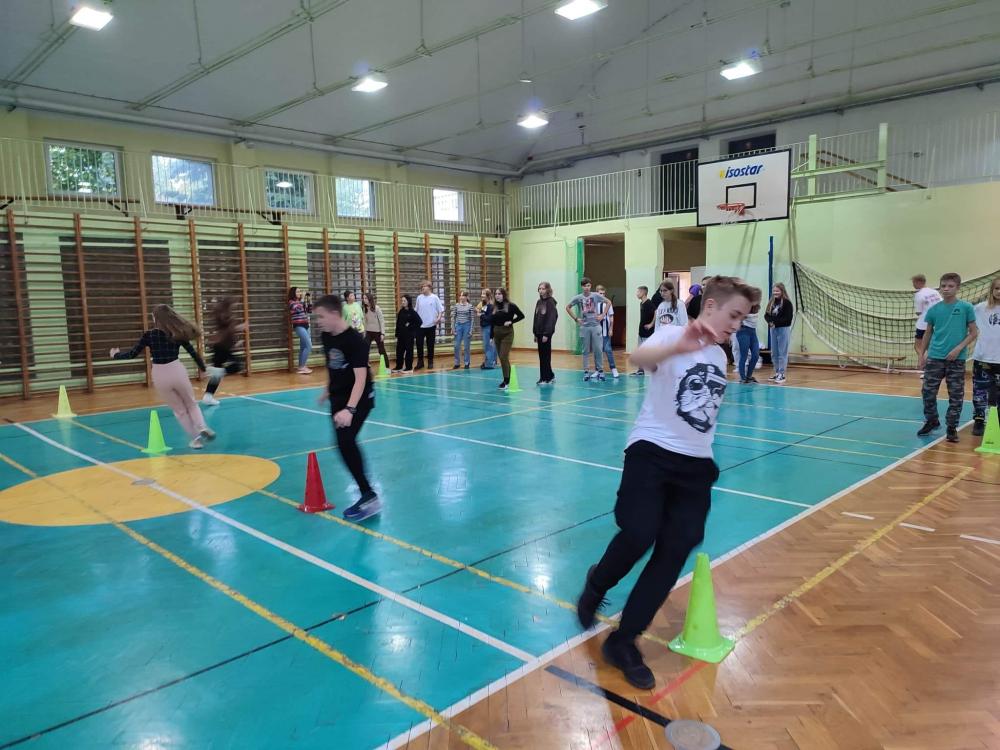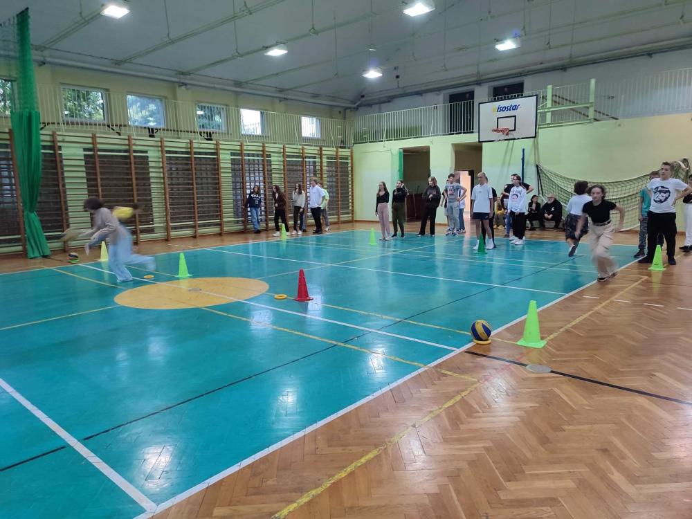 Nasi uczniowie i uczniowie ze Słowacji wspólnie wzięli udział w grach i zabawach ruchowych na sali gimnastycznej, bawiąc się przy tym fantastycznie. Oto fotorelacja z tego wydarzenia.