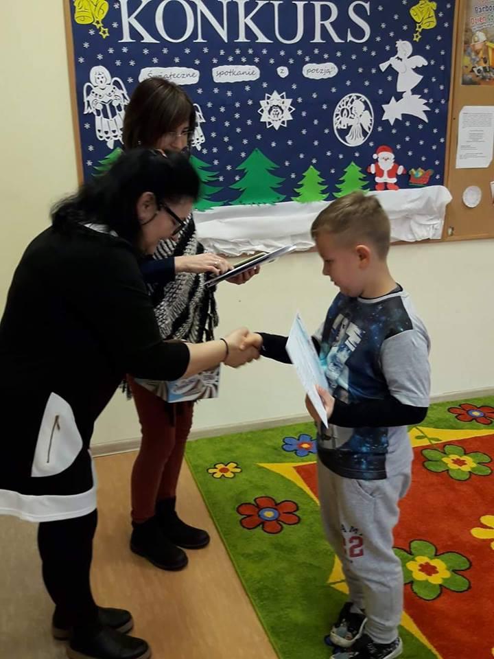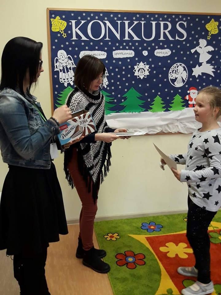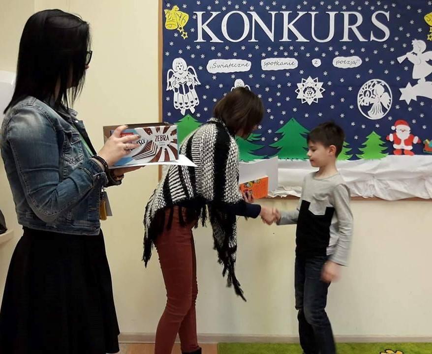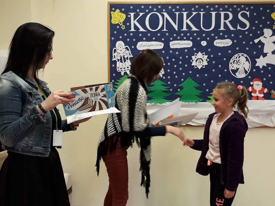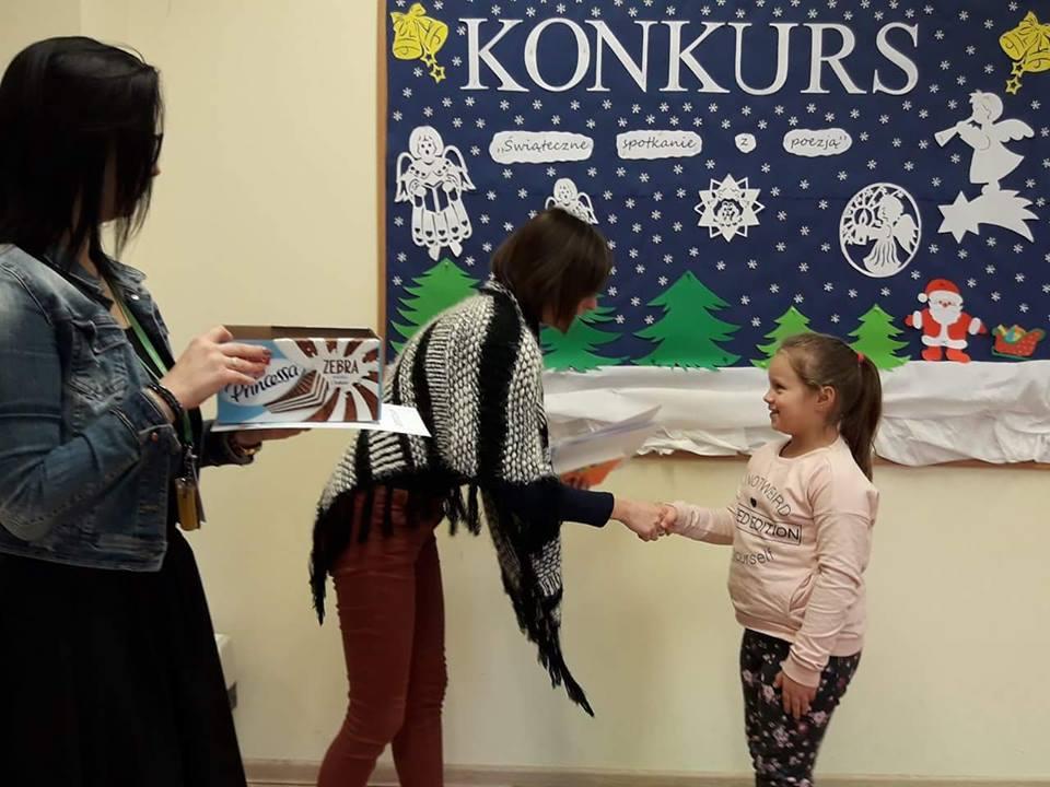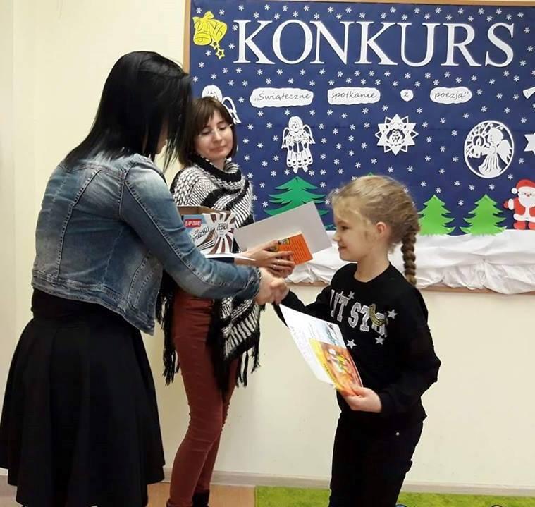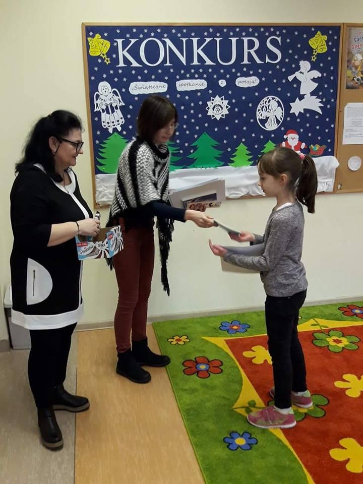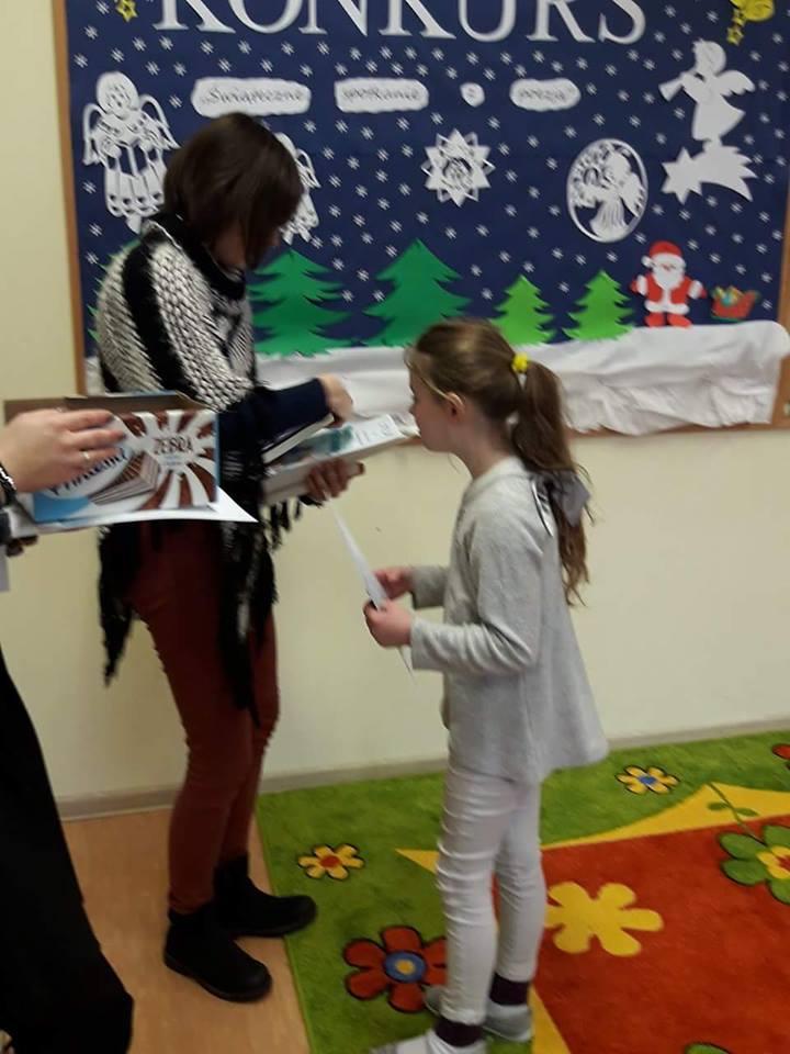 W czwartek 11 stycznia zostały rozdane dyplomy i nagrody książkowe uczniom, którzy zdobyli l, ll, lll m-ce oraz wyróżnienia w Il Konkursie Recytatorskim " Świąteczne spotkania z poezją", który miał miejsce 18 i 20 grudnia 2017 r.