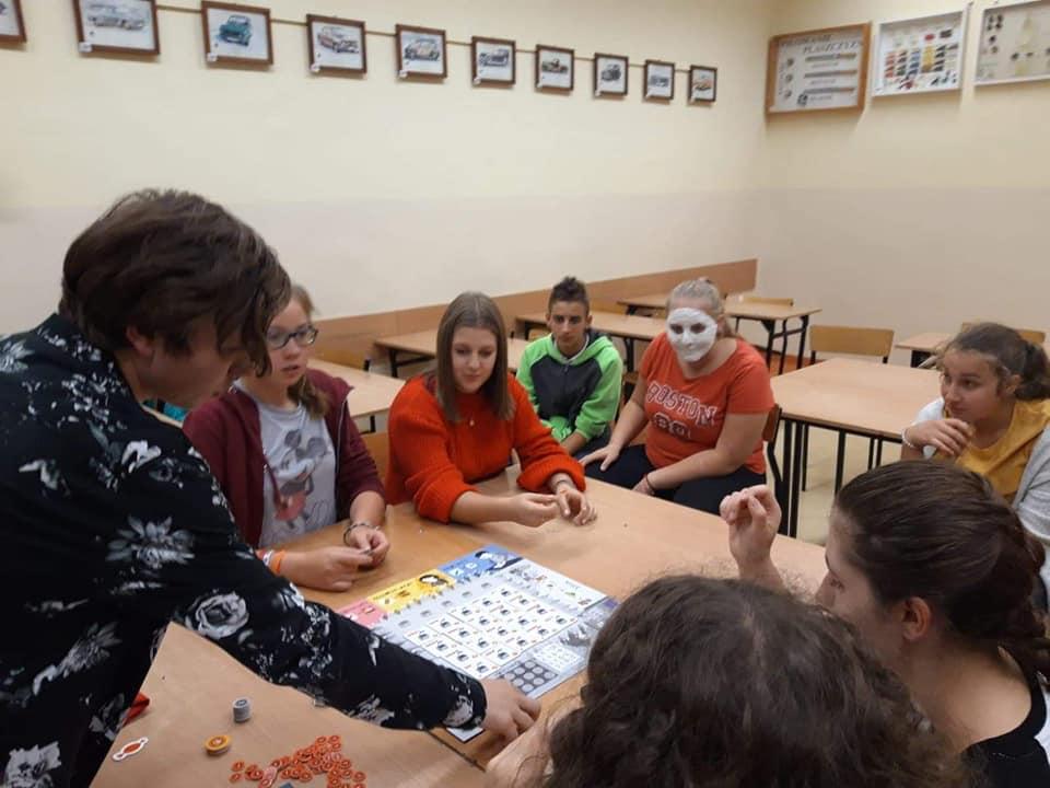 Naszą szkołę reprezentowała dziesięcioosobowa drużyna, która na starcie w Cechu Rzemiosł Budowlanych i Różnych w Kaliszu, przy ul. Częstochowskiej została podzielona na dwa zespoły. Zespół Gry Miejskiej „Zawodowy Ekspress”, w skład którego weszli: Szymon Gołębiewski, Filip Kaczmarczyk, Jan Kobyłka, Mateusz Prałat i Dawid Rosadziński z klasy 8B, pod opieką Pani Moniki Kubiak, wyruszył w miasto, gdzie w sześciu Punktach Kontrolnych realizował kolejne zadania.