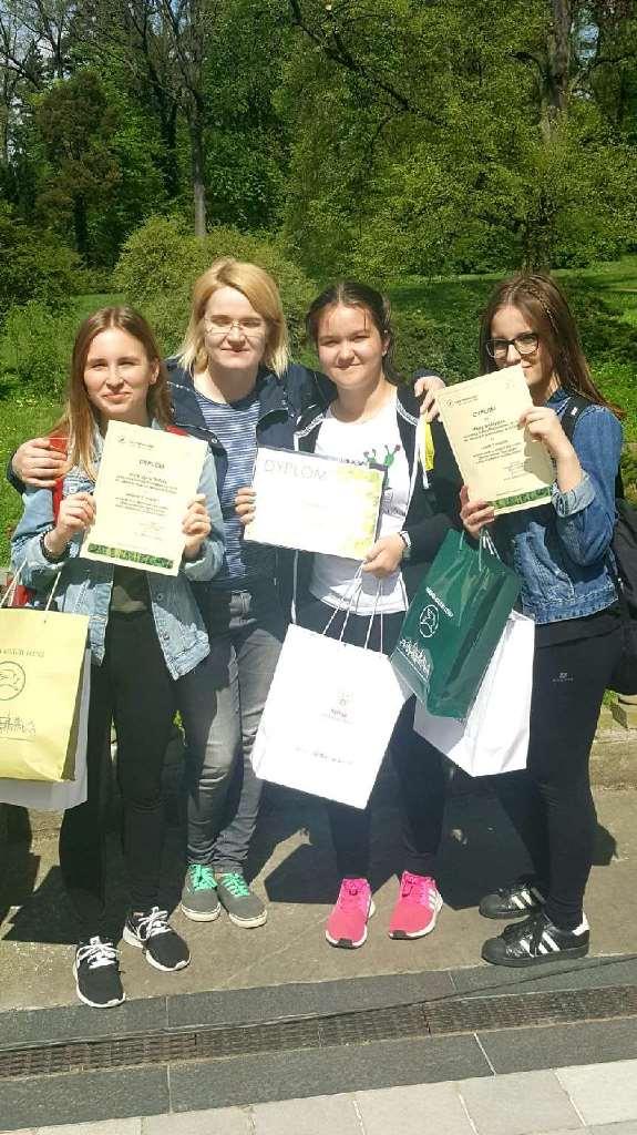 3 - osobowa drużyna uczennic klasy 2d, w składzie: Katarzyna Sałata, Marta Andrysiak, Kornelia Kalek pod opieką p. Hanny Matusiak zajęła I miejsce w Rajdzie Ekologicznym „Tajemnica bioróżnorodności”.