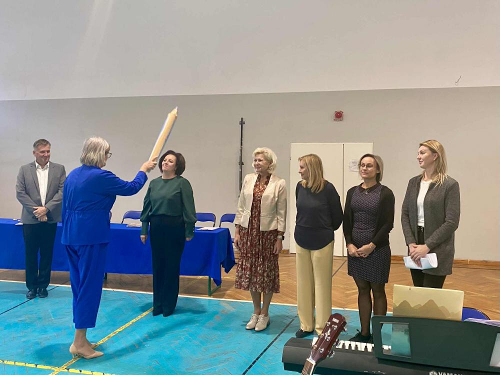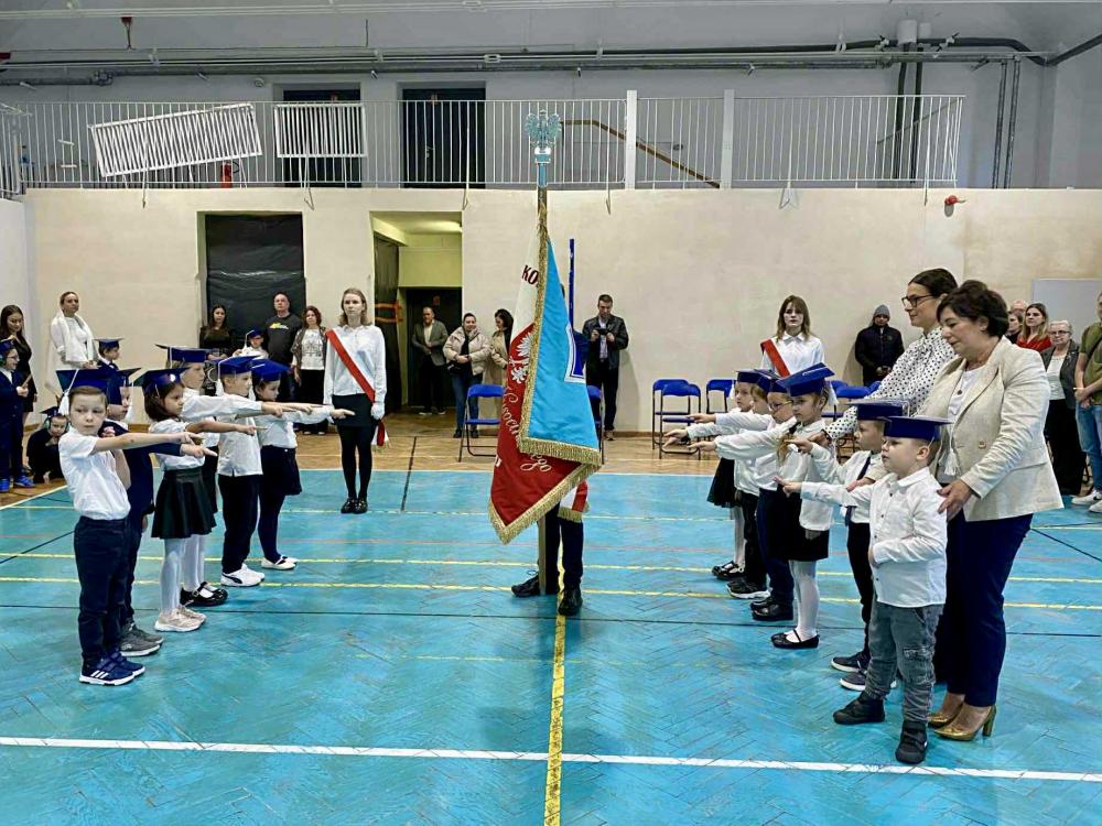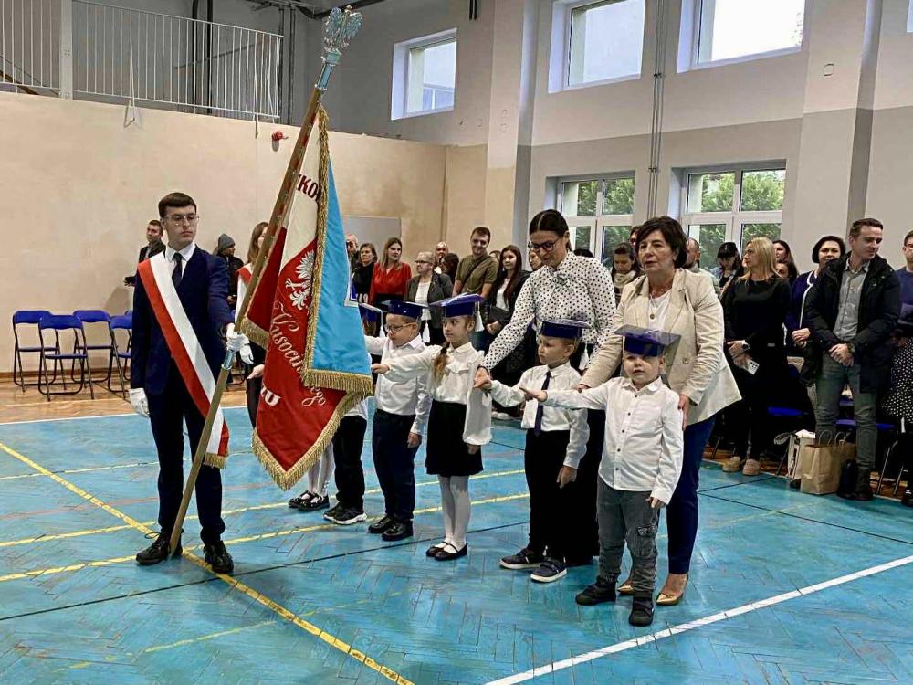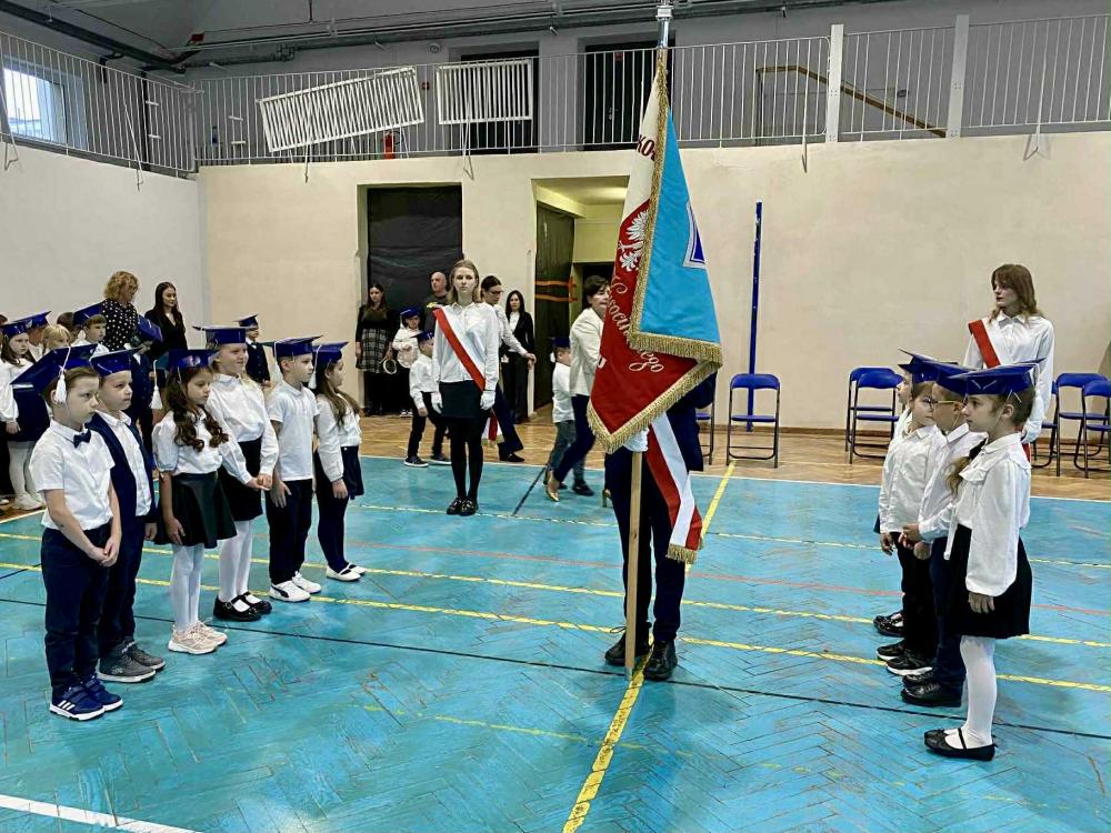 Podczas ceremonii pierwszoklasiści złożyli uroczyste ślubowanie na sztandar szkoły. W obecności dyrekcji, grona pedagogicznego i zaproszonych gości zostali oficjalnie przyjęci do społeczności szkolnej.