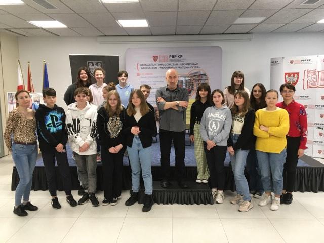 27 kwietnia uczniowie z klas : 4c,7b,7c,7d wzięli udział w spotkaniu z pisarzem, historykiem i scenarzystą - Sławomirem Koprem w Książnicy Pedagogicznej.