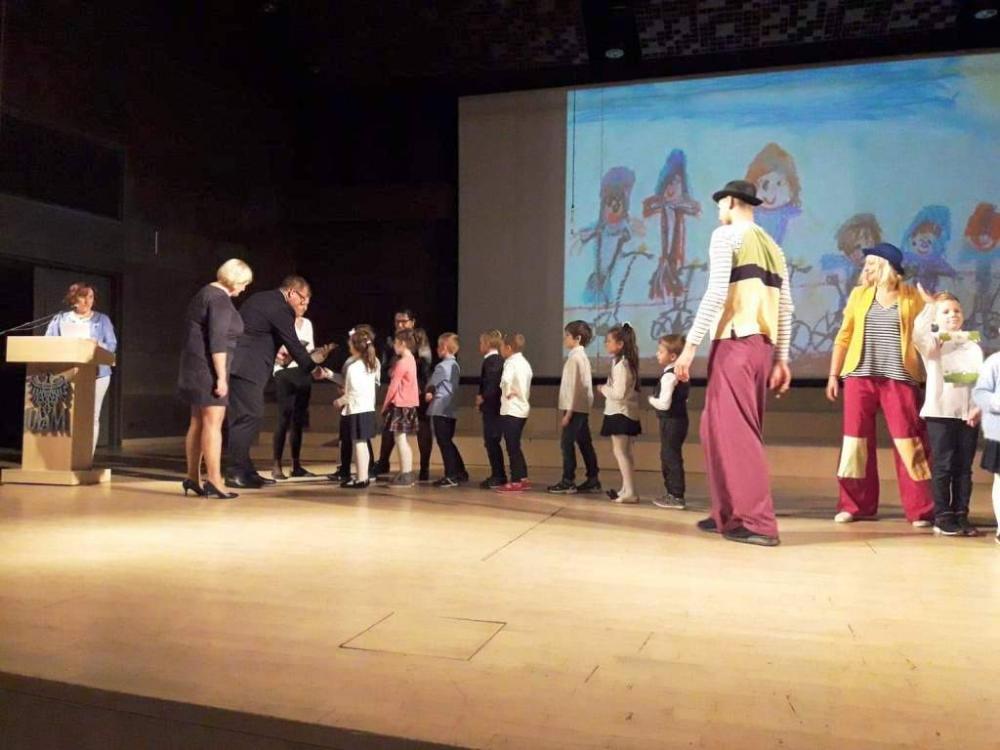 Spotkanie odbyło się w sali koncertowej UAM. Prezydent Grzegorz Sapiński na wstępie powitał pierwszoklasistów kaliskich szkół w społeczności uczniowskiej. Złożył im życzenia na nadchodzący rok szkolny, a także podarował pamiątkowy dyplom i niewielkie upominki.