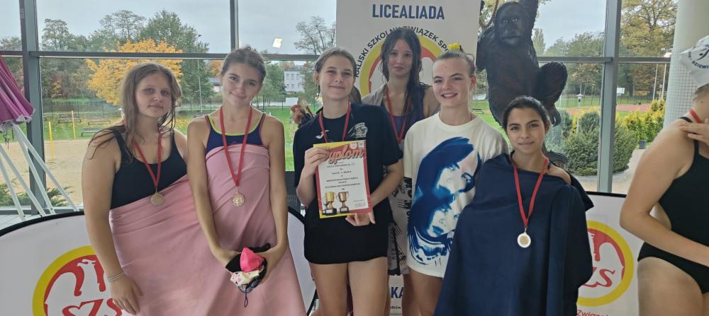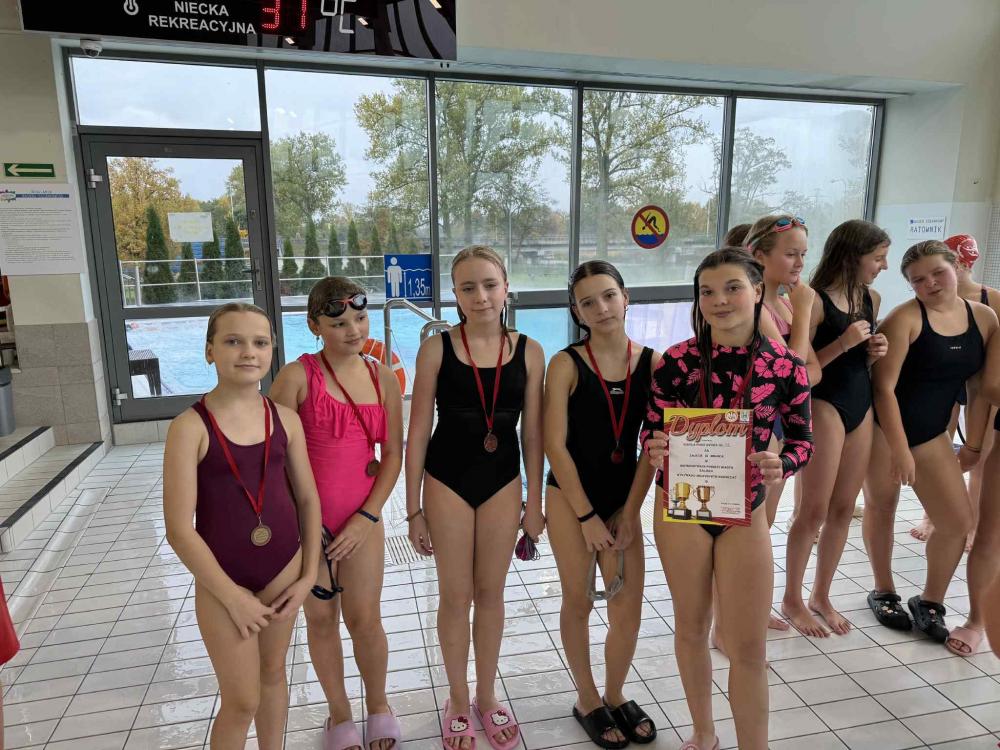 Na tym jednak nie kończą się sukcesy naszych pływaków! W Mistrzostwach Powiatu Kaliskiego w ramach Igrzysk Młodzieży Szkolnej sztafeta dziewcząt zajęła II miejsce, zdobywając tytuł wicemistrzyń powiatu!