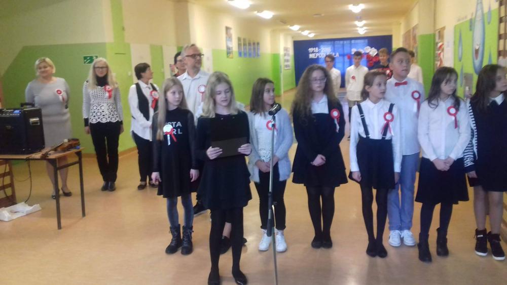 Kolejny punkt naszych szkolnych obchodów święta niepodległości - uczniowie starszych klas obejrzeli fragment przedstawienia w reżyserii pana Macieja Michalskiego "Bóg nieznany - patriotyzm".