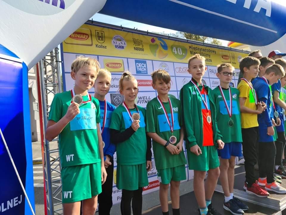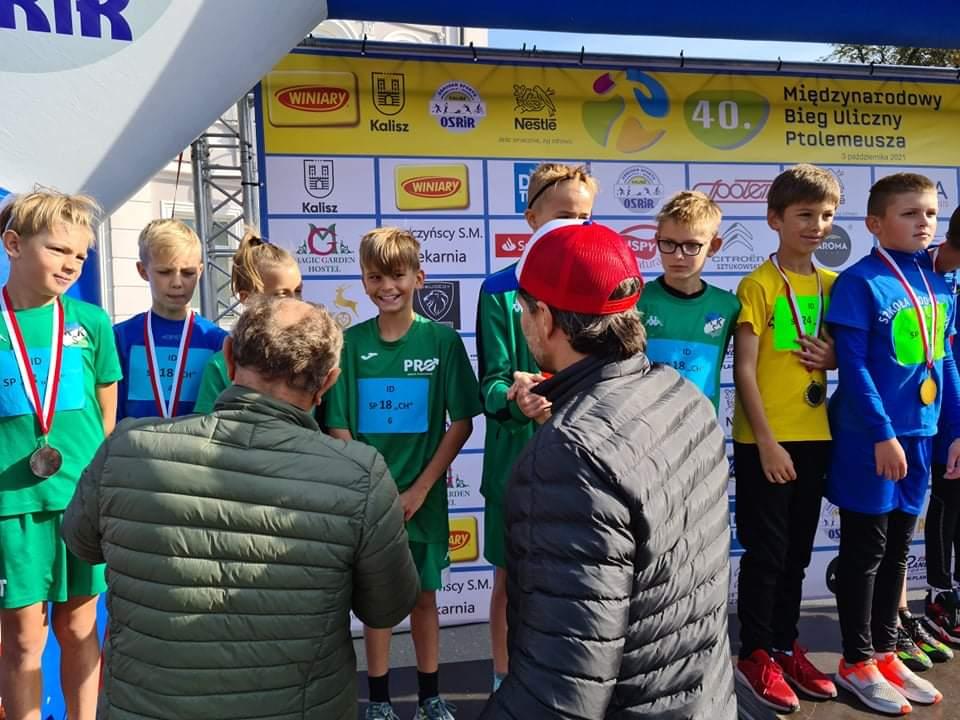 Sztafeta naszych dziewcząt zajęła I miejsce a chłopców II miejsce w Sztafetowych Biegach Przełajowych w Igrzyskach Dzieci podczas XL Biegu Ptolemeusza.