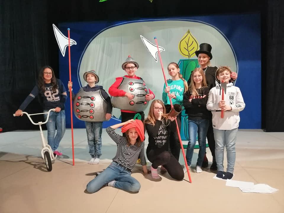 Poznali teatr zza kulis i wzięli udział w warsztatach aktorskich. Dziękujemy Panu Marcinowi Trzęsowskiemu za fantastyczne warsztaty i mnóstwo świetnej zabawy.