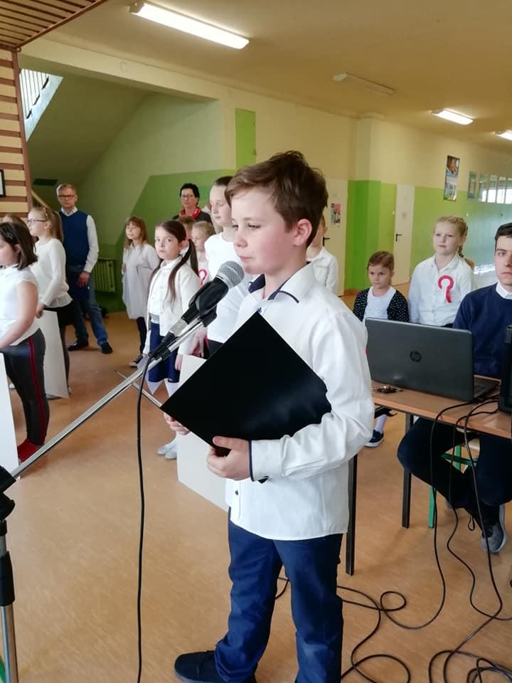 Przedstawiciel Samorządu Szkolnego przypomniał wszystkim zebranym o innych ważnych dla Polaków rocznicach, które wiążą się z majem.