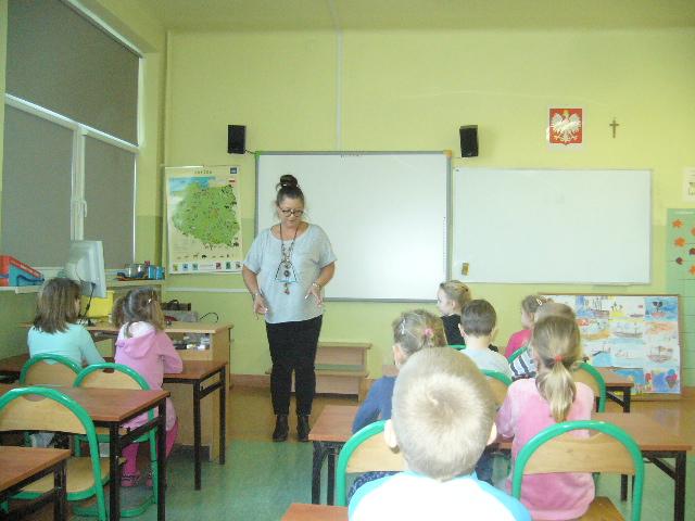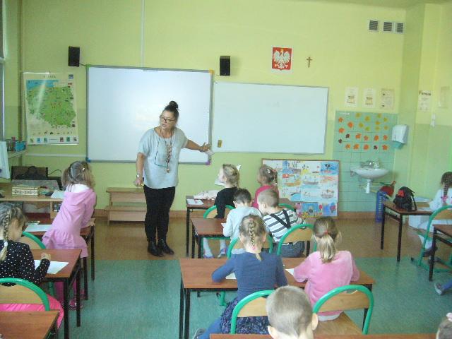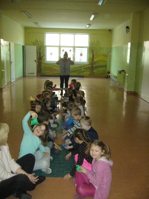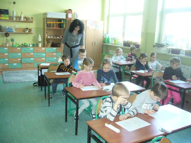 W czwartek gościliśmy grupę sześciolatków z Niepublicznego Przedszkola Jacka i Agatki. Dzieci wzięły udział w zajęciach, prowadzonych przez p. Agnieszkę Kieszkowską. Zajęcia dydaktyczne miały na celu utrwalenie określeń dotyczących stosunków przestrzennych, do tego celu p. Kieszkowska wykorzystała tablicę multimedialną i zabawy ruchowe. Każdy przedszkolak otrzymał certyfikat udziału w lekcji. Dzieci miały również okazję bliżej poznać szkołę, do której być może przyjdą w przyszłym roku szkolnym.
