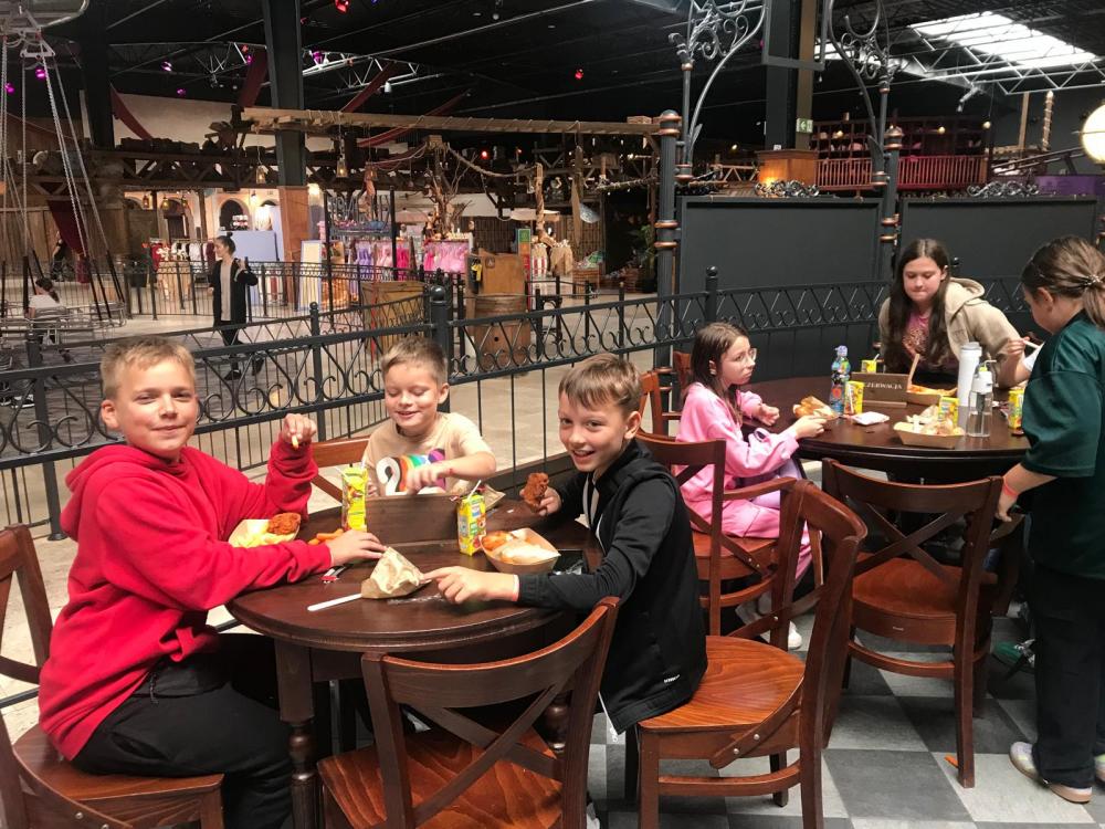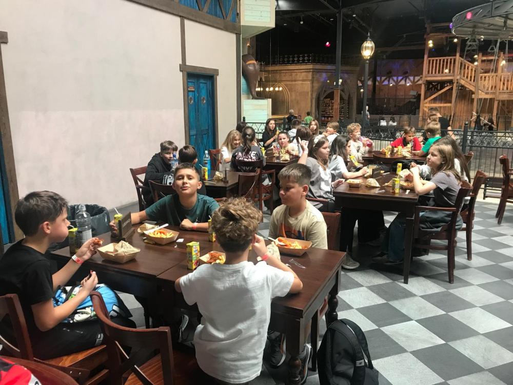 Głównym punktem programu była wizyta w parku Mandoria, gdzie dzieci mogły korzystać z licznych karuzel, kolejek i innych atrakcji tematycznych. Wspaniała sceneria stylizowana na renesansowe miasto sprawiła, że uczniowie przenieśli się w czasie i poczuli klimat dawnych epok.