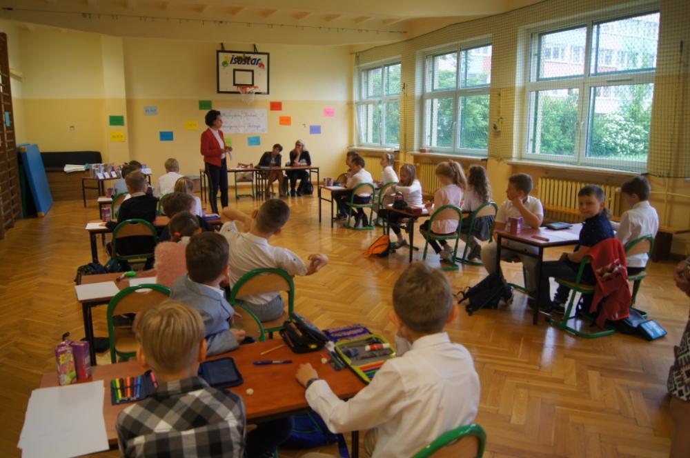Międzyszkolny Konkurs Rozwiązywania Zadań Tekstowych został w naszej szkole zorganizowany już po raz siedemnasty. Uczniowie z ośmiu szkół zmierzyli się z pięcioma zadaniami. Trzy zadania rozwiązywali indywidualnie. Dwa zadania były ich pracą zbiorową. Uczestnicy musieli zmierzyć się między innymi z działaniami, które polegały na wyliczeniu długości boków prostokąta mając tylko do dyspozycji jego obwód i stosunek długości do szerokości.