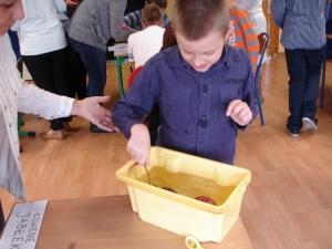 W miłej atmosferze, wśród konkursów i zabaw minęły nam dwie lekcje. Aby otrzymać zaliczenie tego dnia każdy uczeń miał do wykonania następujące zadania: slalom z jabłkiem na łyżce rzut jabłkiem do celu rozwiązanie krzyżówki ułożenie puzzli wyłowienie jabłka z wody "wesołe jabłuszko" - czyli jak najciekawsze ozdobienie jabłka