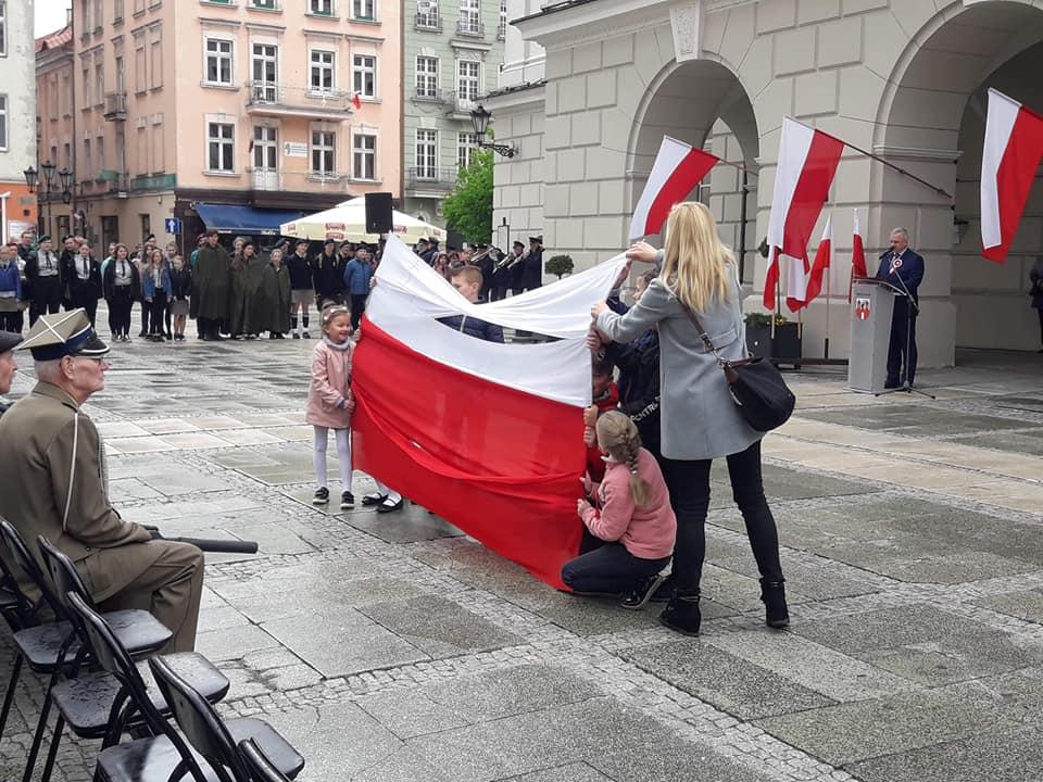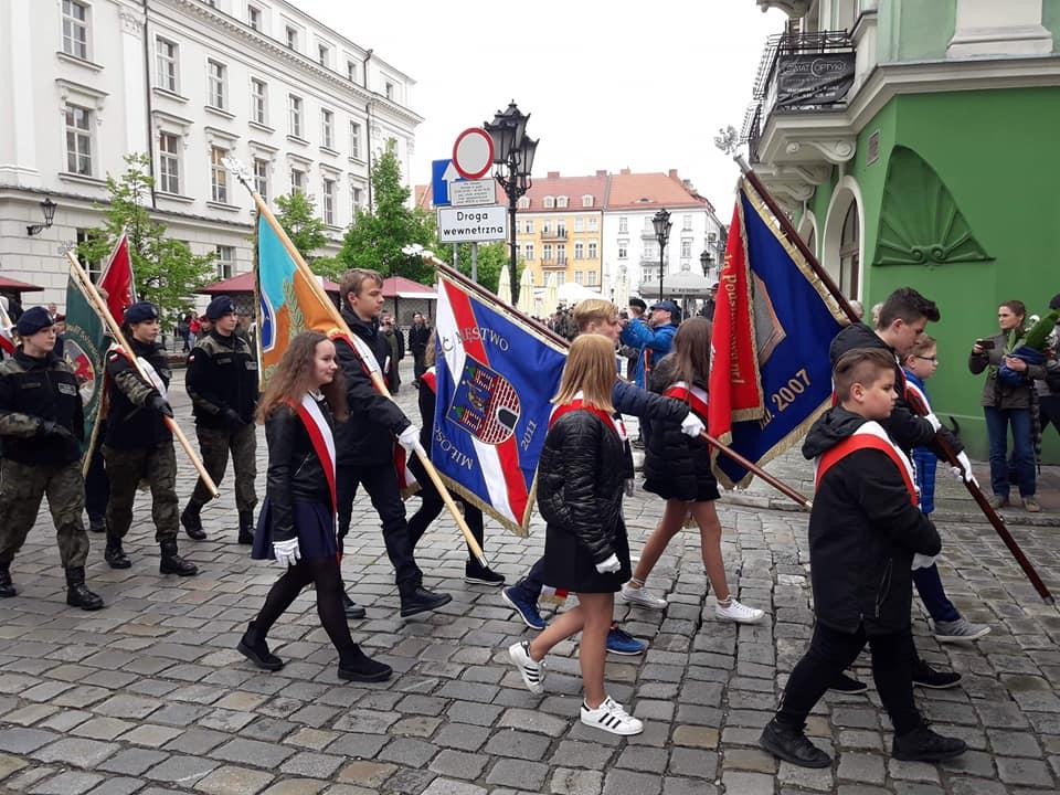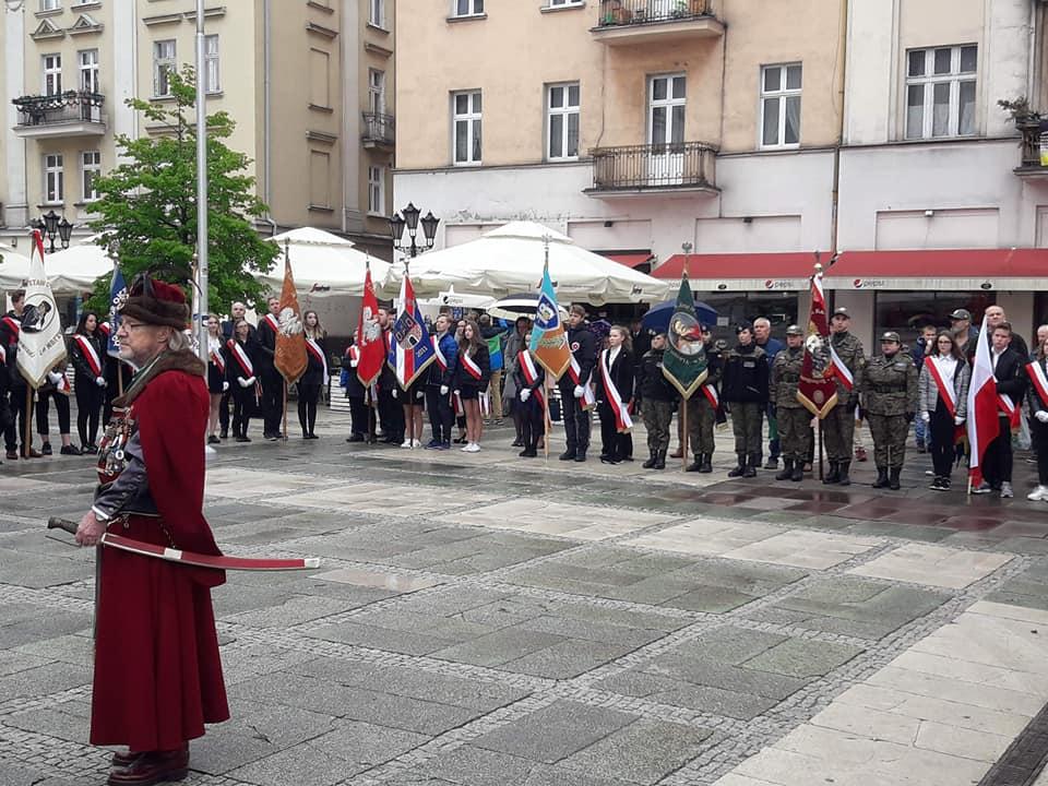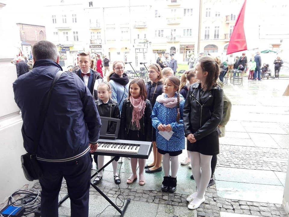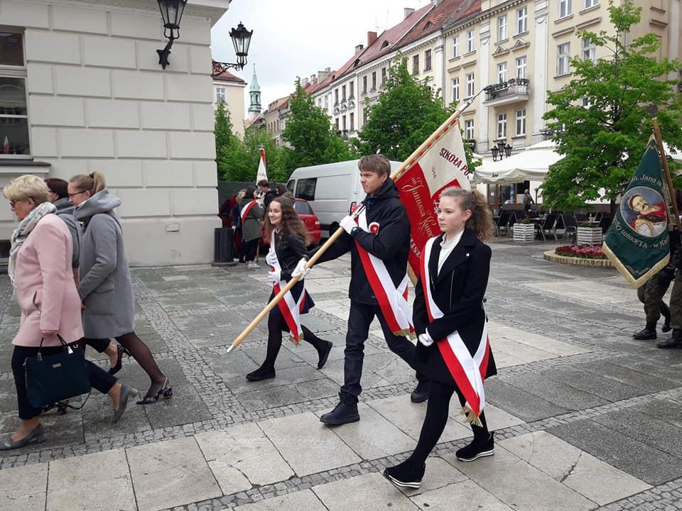 3 maja, na kaliskim placu przed ratuszem, w niezbyt sprzyjającej aurze, uczniowie naszej szkoły wzięli udział w uroczystościach miejskich z okazji rocznicy uchwalenia Konstytucji 3 Maja.