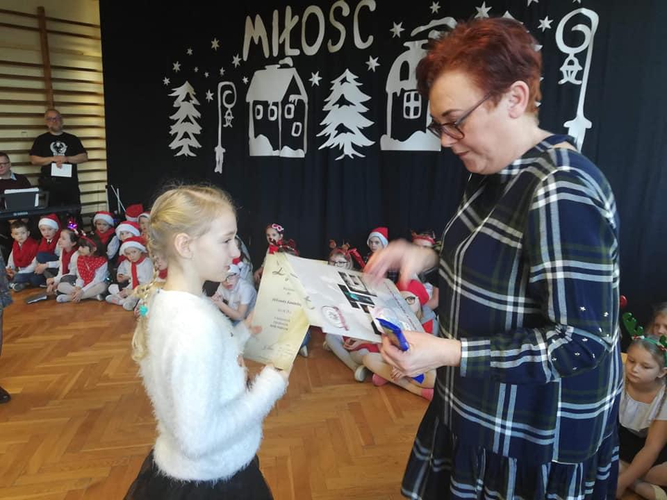 Po części artystycznej rozstrzygnięto konkurs na najładniejszą kartkę świąteczną przygotowaną w programie Paint oraz na najpiękniejszą choinkę.