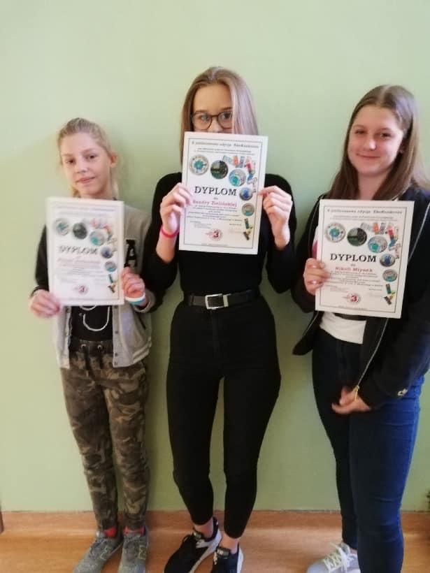 W turnieju wiedzy pt.,, Z Ekologią za pan brat" zmierzyło się 27 uczestników z 8 szkół podstawowych. Uczennice Sandra Zielińska oraz Nikola Młynek otrzymały wyróżnienia. Po zakończeniu konkursu uczestnicy zostali zaproszeni do sali gimnastycznej na pokaz talentów wokalnych w ramach Międzyszkolnego konkursu piosenki obcojęzycznej ,,Sing & win".