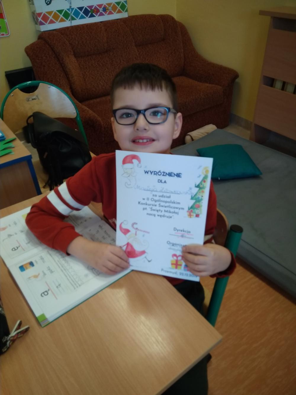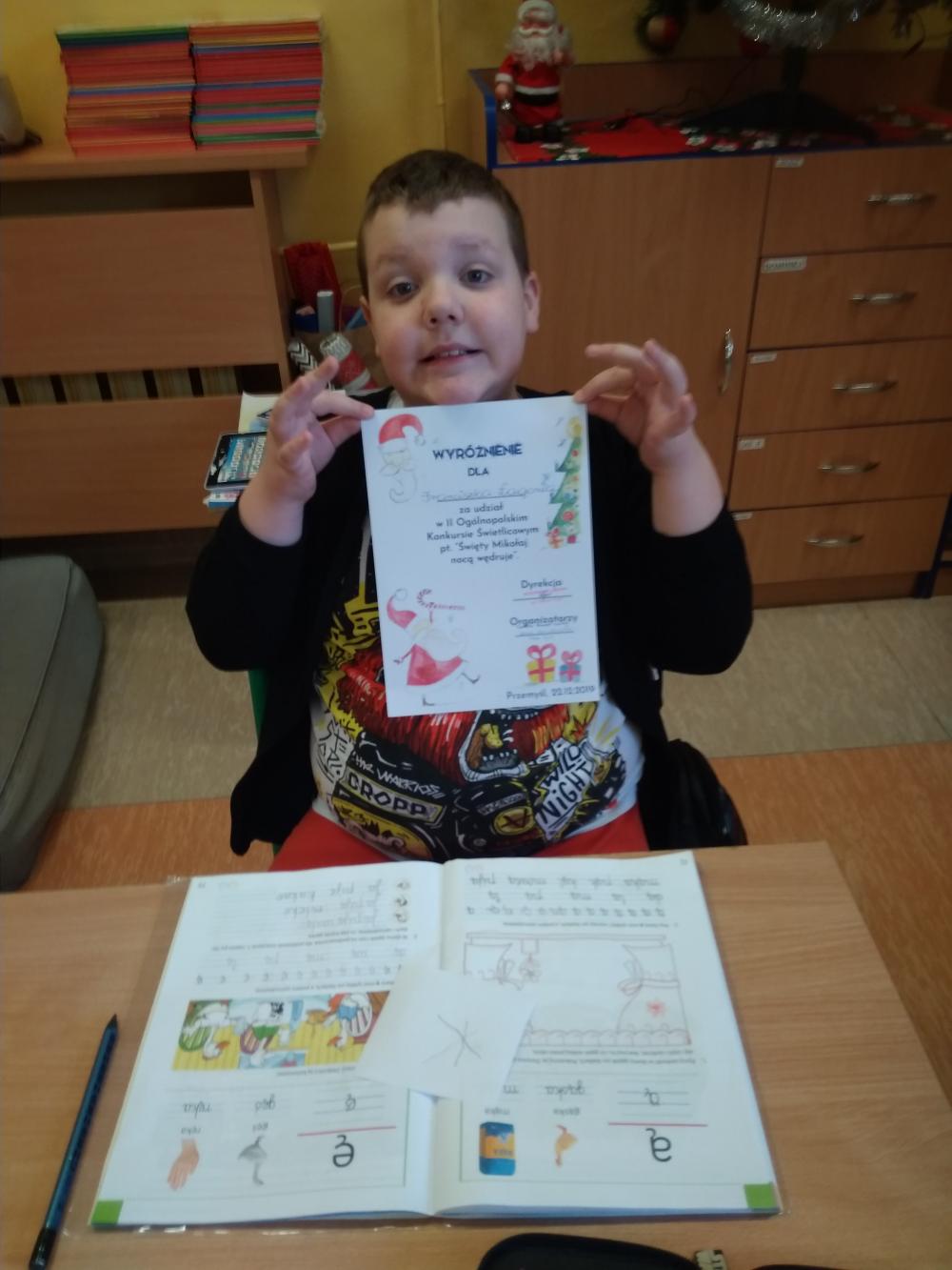 Jan Proficz uczeń klasy drugiej dla dzieci z autyzmem zajął III miejsce w Ogólnopolskim Konkursie Plastycznym pod tytułem "Mikołaj nocą wędruje"