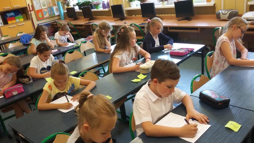 O tytuł "Małego Mistrza Ortografii" konkurowało ze sobą 14 trzecioklasistów. Uczniowie zmagali się z dyktandem oraz karta pracy pełną trudności ortograficznych. Organizatorem konkursu była pani Monika Pawlak. W składzie komisji konkursowej była pani Wicedyrektor Mariola Zalewicz oraz panie Katarzyna Szmidt i Agnieszka Nowicka.Ogłoszenie wyników odbędzie się 30 maja podczas festynu z okazji Dnia Dziecka.