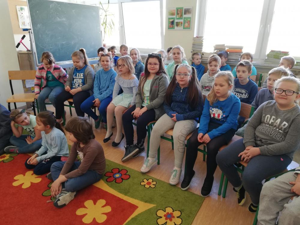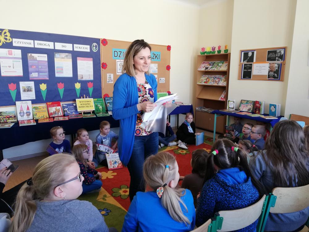 Z okazji Międzynarodowego Dnia Książki dla Dzieci uczniowie klasy 1a wraz z Wychowawczynią Monika Pawlak przygotowali dla klas 2 i 3 przedstawienie poświęcone Andersenowi. W tym dniu gościliśmy także Panią Aldonę Zimną i Różę Pomiecińską Książnicy Pedagogicznej, które przeczytały dzieciom książkę Jaks skrzat Jagódkazakładał bibliotekę.