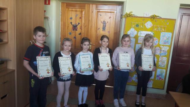 6 kwietnia 2018 roku odbyło się ogłoszenie wyników i wręczenie nagród w konkursie plastycznym "Moja Marzanna" organizowanym przez SP 14 w Kaliszu. Trzecie miejsce zajęła uczennica klasy 1 a Estera Głuszkowska i wyróżnienie otrzymała uczennica Gabrysia Jaszkiewicz również z klasy 1a. Bardzo dziękujemy wszystkim dzieciom za udział w konkursie. Serdecznie gratulujemy.