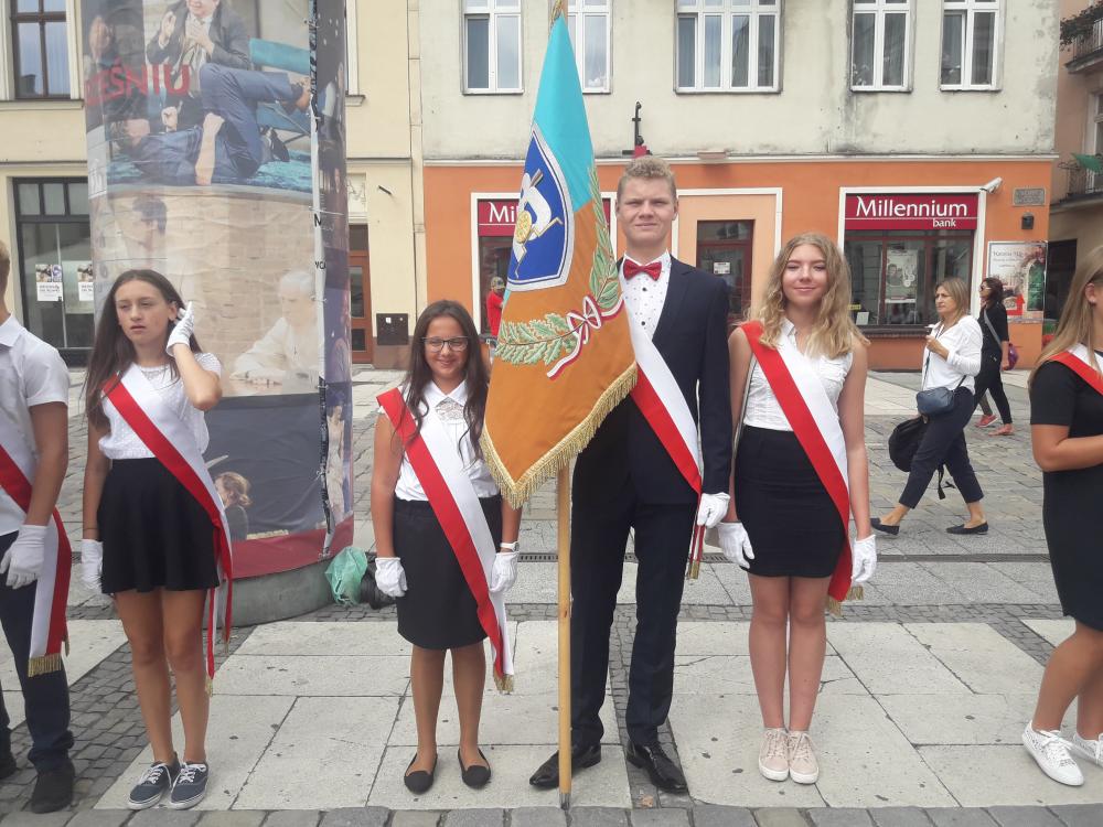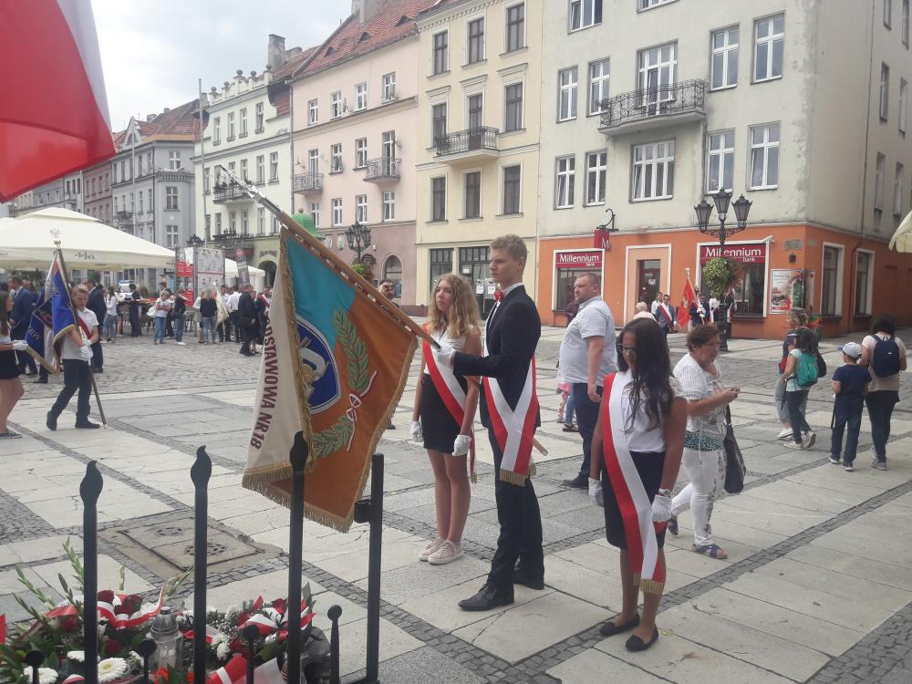 W samo południe pod kaliskim Ratuszem zebrały się delegacje organizacji społecznych, politycznych, kombatanckich oraz kaliskich szkół, aby oddać hołd wszystkim poległym w czasie II wojny światowej. Złożono wiązanki kwiatów i zapalono znicze pamięci. Także przedstawiciele naszej szkoły pamiętali o ofiarach tej okrutnej wojny i zapalili znicz pamięci.