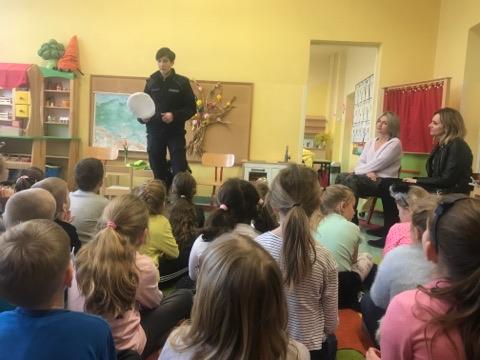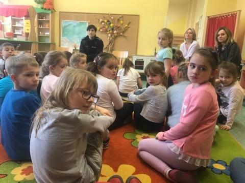 Dnia 12 marca br. klasa 1a oraz dzieci ze świetlicy szkolnej, skorzystały z zaproszenia zerówki szkolnej na spotkanie z panią funkcjonariusz -Marleną z Komendy Miejskiej Policji w Kaliszu. Pani Marlena opowiedziała dzieciom o swoim zawodzie, przypomniała zasady bezpieczeństwa w ruchu drogowym, właściwym korzystaniu z internetu oraz ogólnie rozumianym przez nie pojęciem bezpieczeństwa.