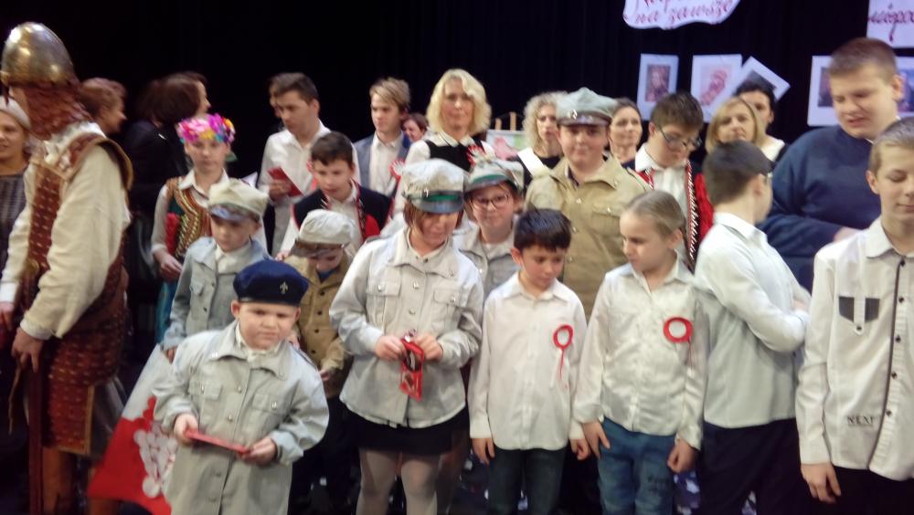 Wykonawcami byli uczniowie Szkoły Podstawowej Specjalnej nr 19 w Kaliszu oraz chór złożony z nauczycieli tej placówki. Niezwykłych wrażeń i wielu wzruszeń dostarczyli nam młodzi aktorzy oraz pieśni patriotyczne w wykonaniu chóru.