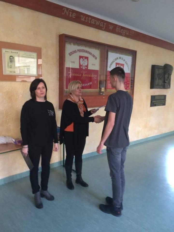 W naszej szkole najwyższy wynik uzyskał uczeń Konrad Karoński, zdobywając 10 miejsce w województwie. Na pochwałę zasługują również uczniowie, którzy uzyskali najlepsze wyniki na poziomie klasy: Mateusz Strzałka, Maria Kaftanowicz, Andrzej Urdzela, Justyna Michalak, Klaudia Antkowiak, Julia Pietrzak, Julia Bieniek.