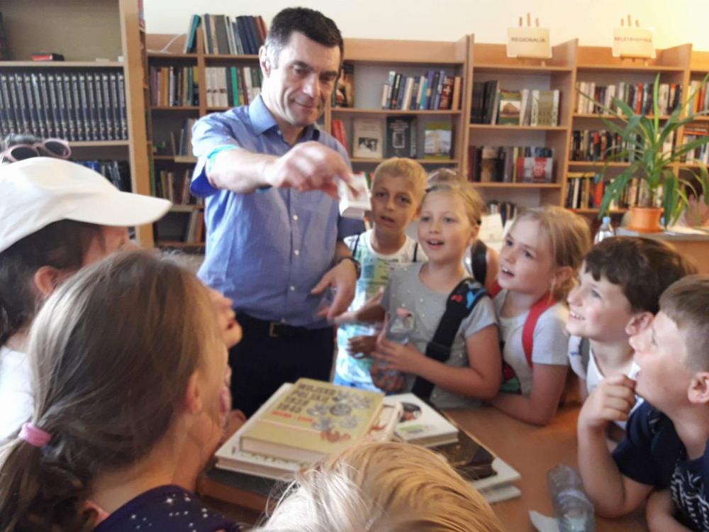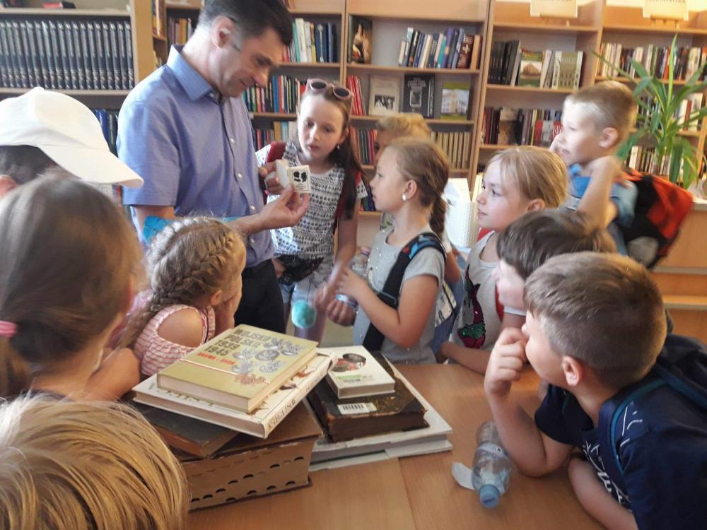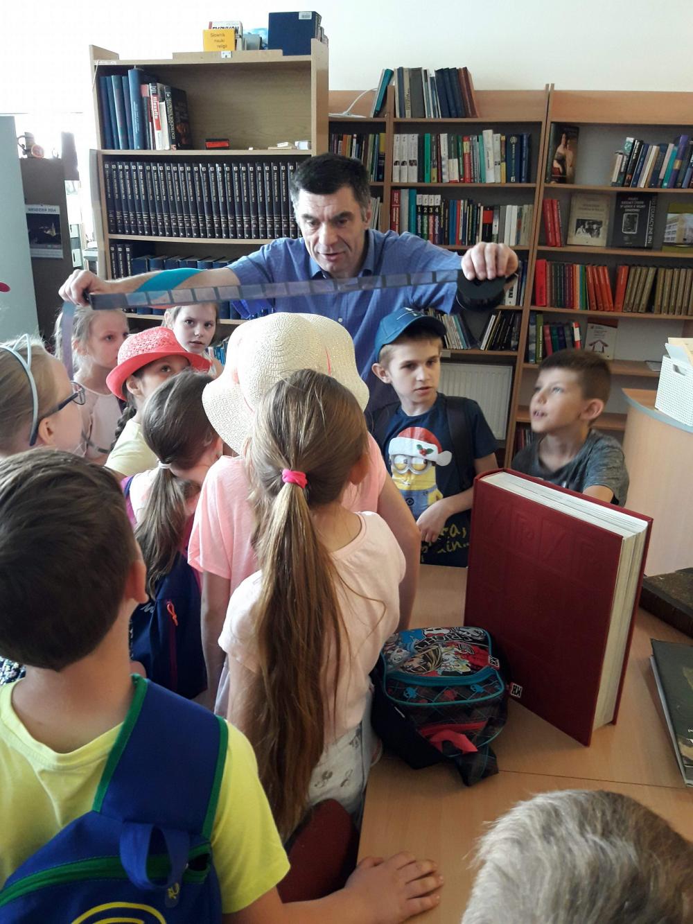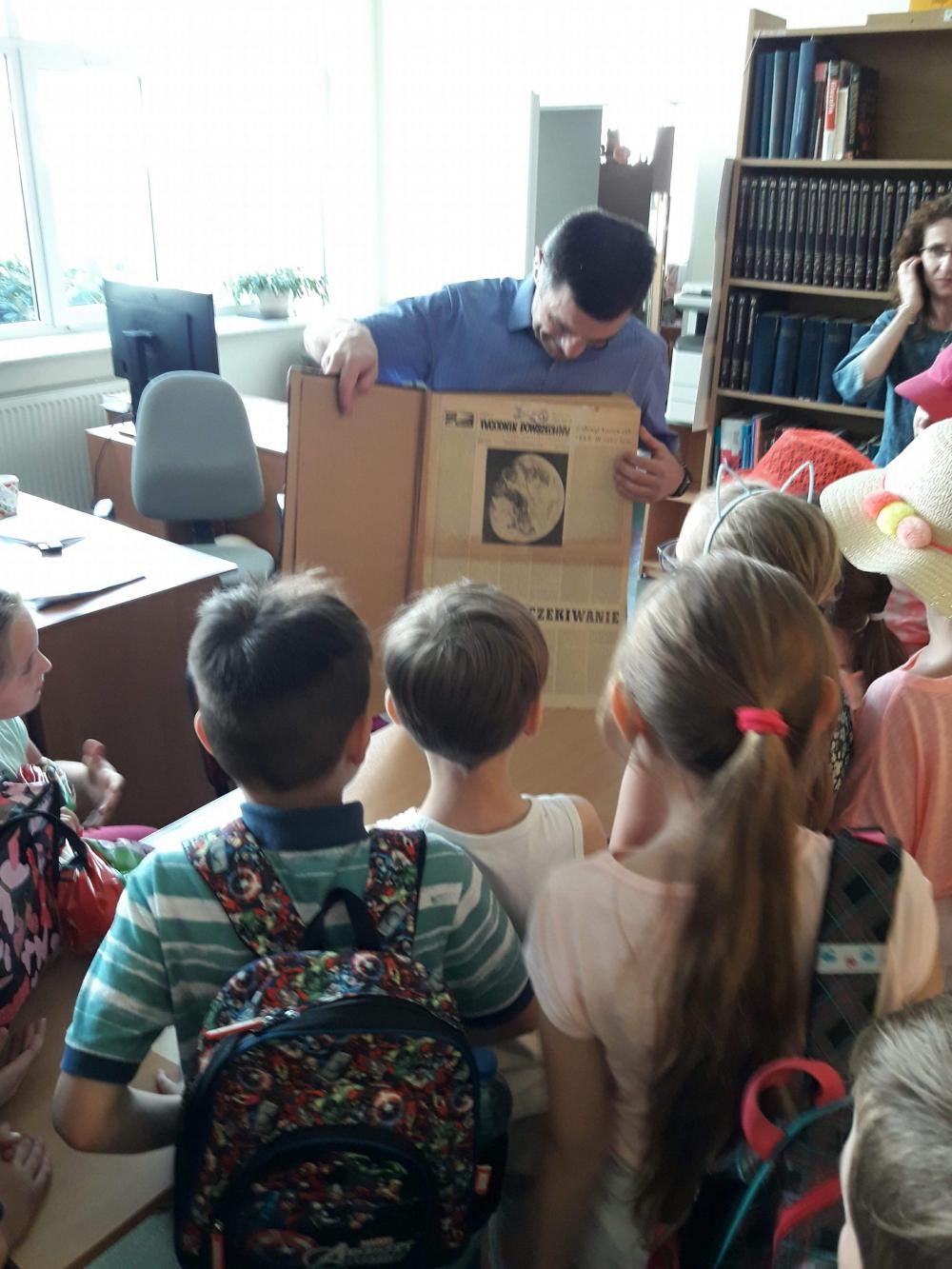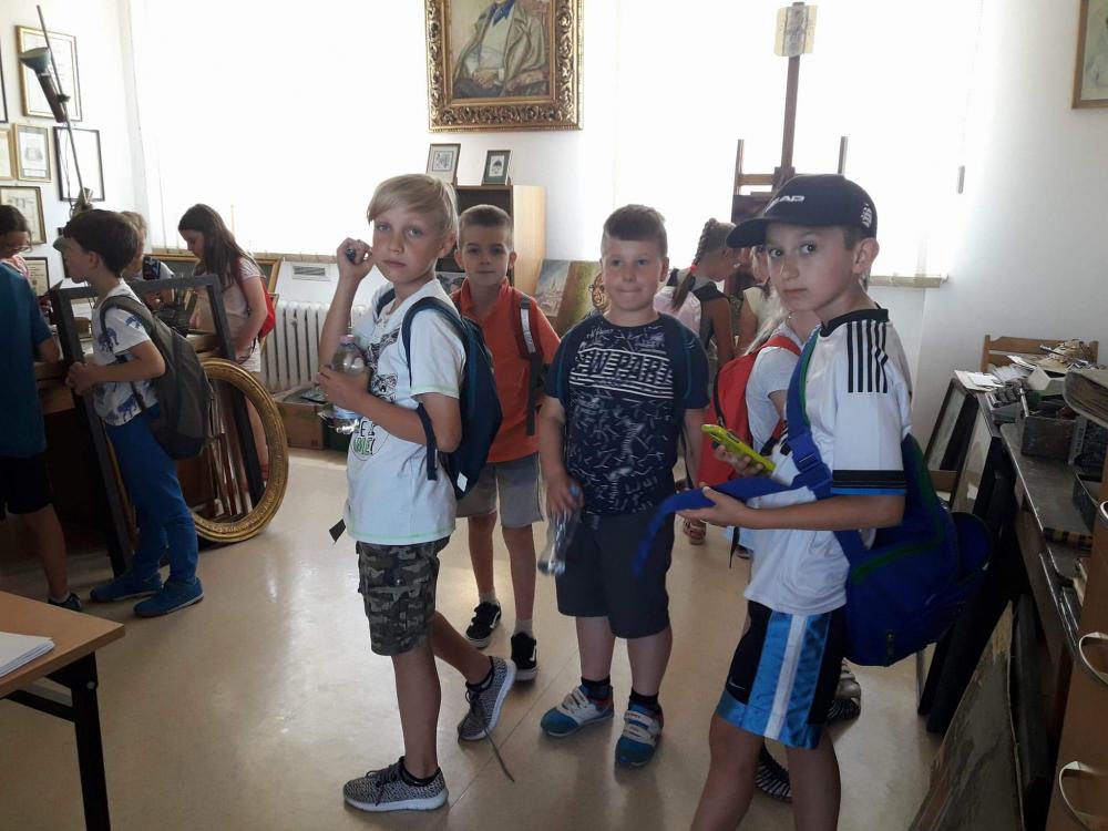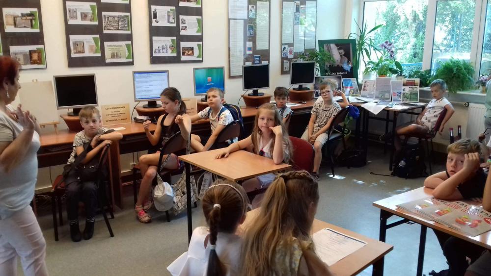 Podczas warsztatów dzieci miały okazję poznać techniki kolażu i pantomimy pracując indywidualnie i w zespole. Uczniowie wzięli udział w lekcji kaligrafii pisząc gęsim piórem i stalówką. Mieli również sposobność zapoznania się z księgozbiorem biblioteki. Zostały im zaprezentowane najstarsze, jaki i najmniejsze woluminy. Nasze pociechy odwiedziły także Pracownię Artystyczną Władysława Kościelniaka.