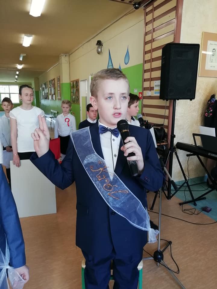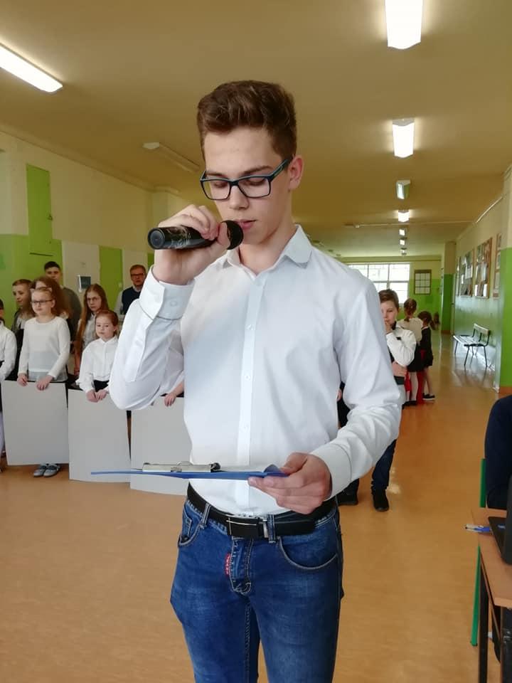 Przedstawiciel Samorządu Szkolnego przypomniał wszystkim zebranym o innych ważnych dla Polaków rocznicach, które wiążą się z majem.
