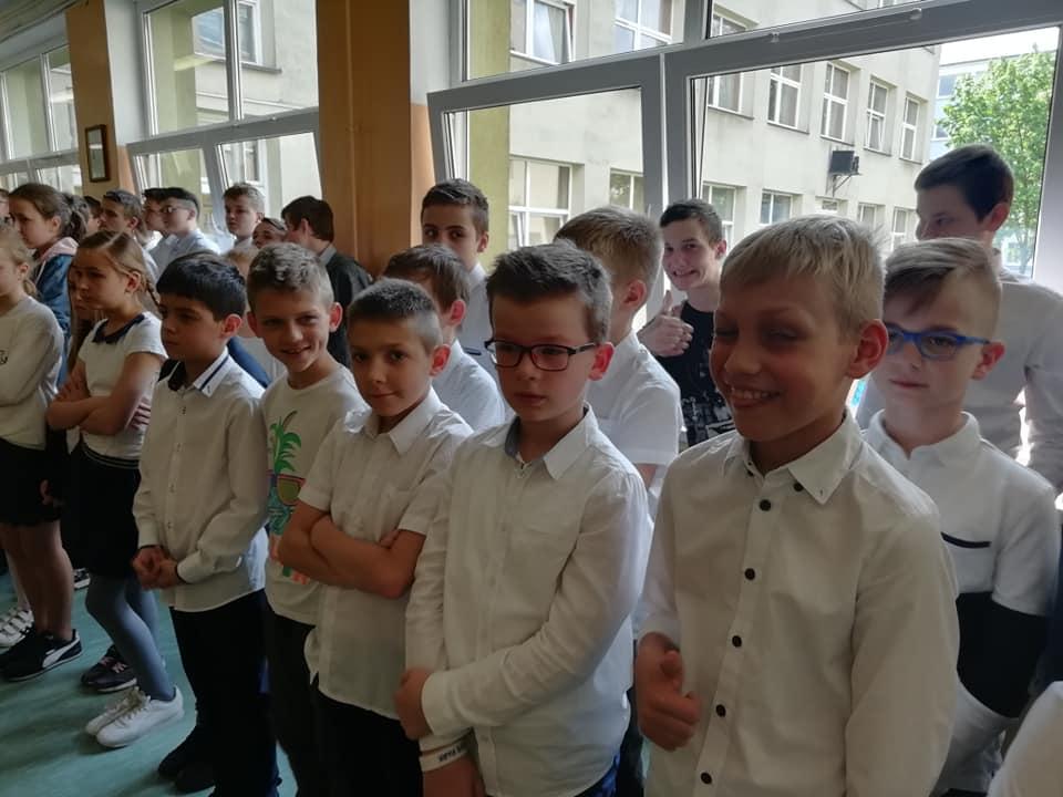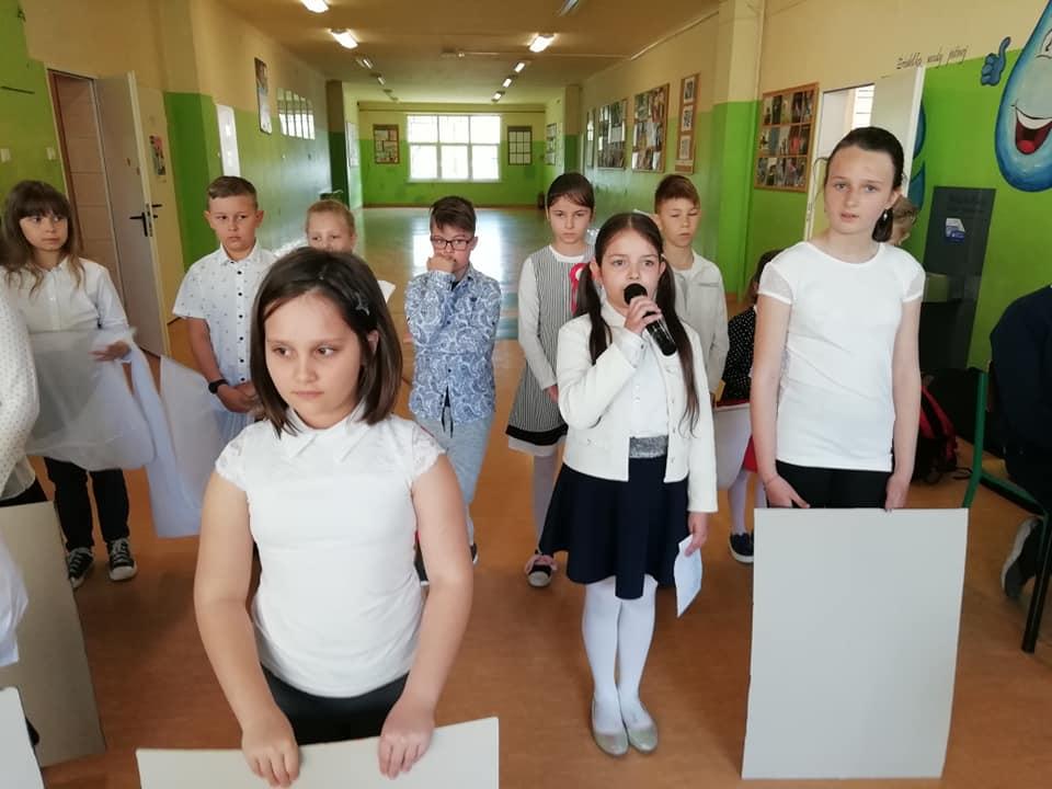 Następnie uczniowie klas 4a, 4b, 4c i 4d oraz chór szkolny przedstawili część artystyczną zatytułowaną "Lekcja konstytucji", a na koniec mogliśmy podziwiać cudowny występ najmłodszych artystów - uczniów klasy IIb.