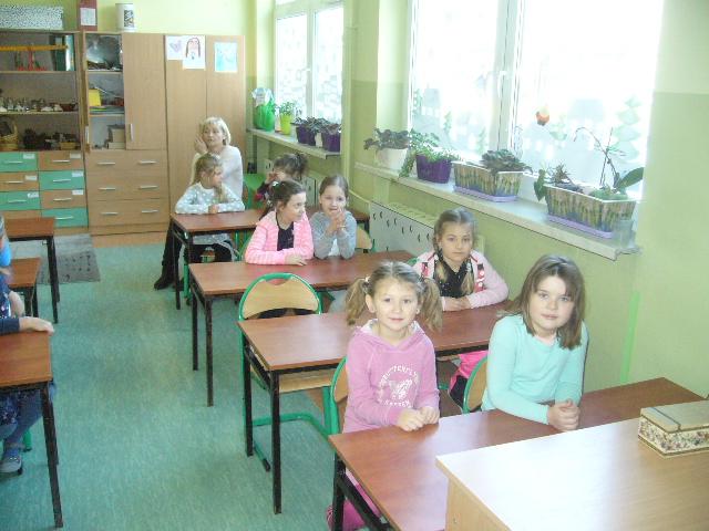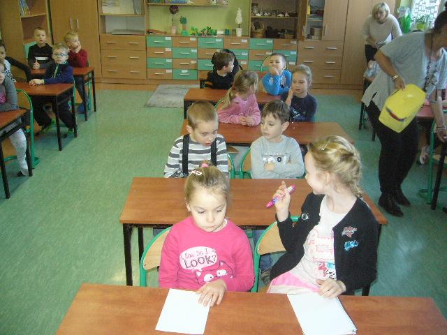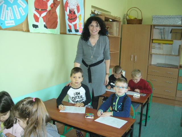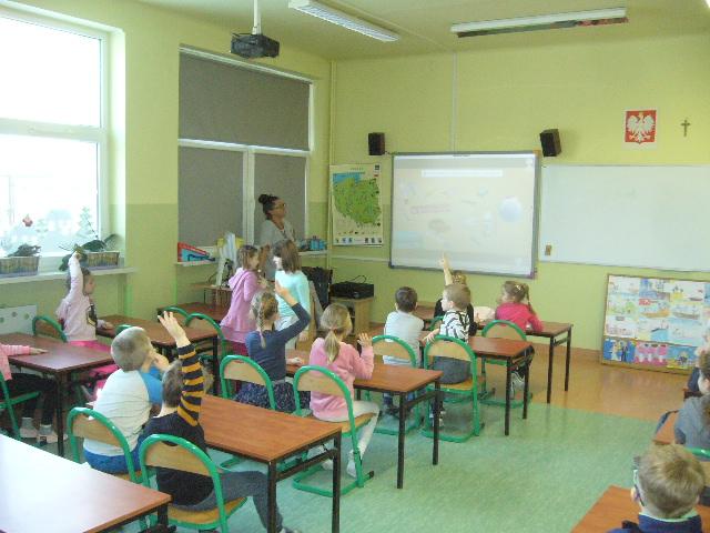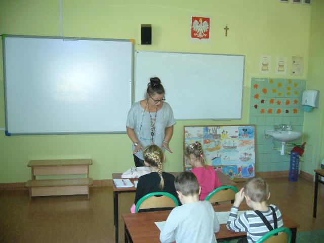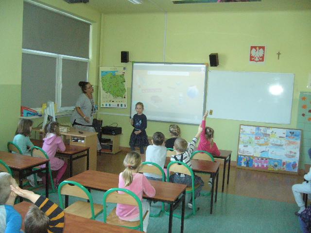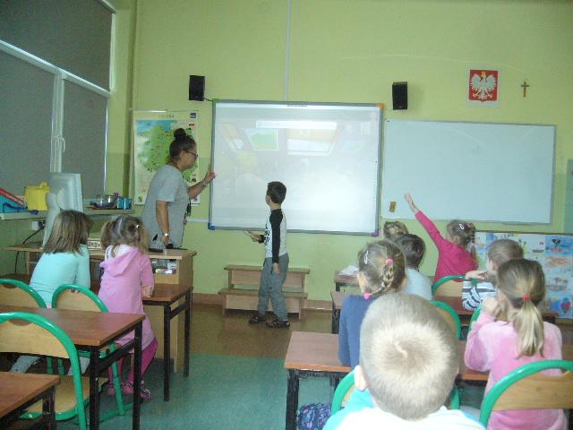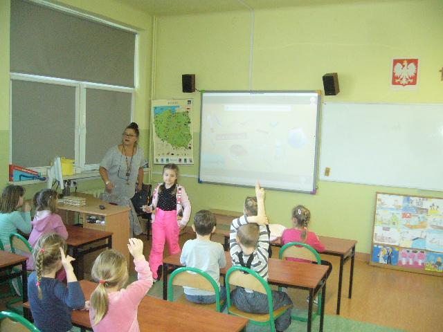 W czwartek gościliśmy grupę sześciolatków z Niepublicznego Przedszkola Jacka i Agatki. Dzieci wzięły udział w zajęciach, prowadzonych przez p. Agnieszkę Kieszkowską. Zajęcia dydaktyczne miały na celu utrwalenie określeń dotyczących stosunków przestrzennych, do tego celu p. Kieszkowska wykorzystała tablicę multimedialną i zabawy ruchowe. Każdy przedszkolak otrzymał certyfikat udziału w lekcji. Dzieci miały również okazję bliżej poznać szkołę, do której być może przyjdą w przyszłym roku szkolnym.