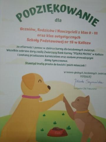 Dzisiaj p. Jolanta Szymańska - przedstawiciel Zwierzęcego Banku Karmy - "Pełna micha" odebrała z naszej szkoły kilkadziesiąt kilogramów karmy dla kotów. Nie zabrakło również miseczek, kocyków i zabawek. Ponadto przekazaliśmy kwotę 521zł na leczenie kotów wolnożyjących i tych, które przebywają w domach tymczasowych.